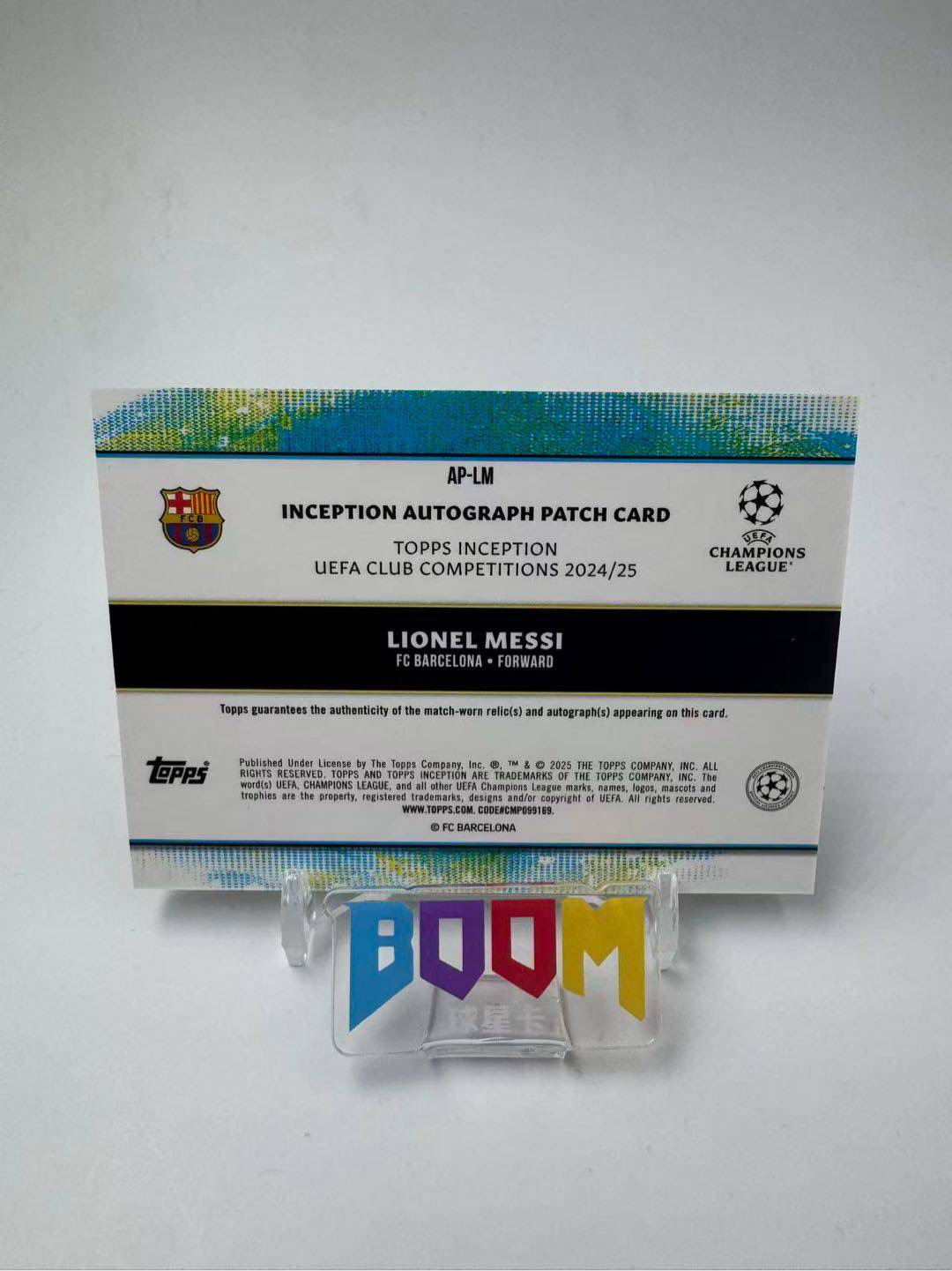 2024-25 Topps Inception Lionel Messi 欧冠盗梦空间 巴塞罗那 里奥 梅西 1/1 爆金 物料签 gu落场物料 亲穿 签字 暴力切割 联合国儿童基金会标 阿根廷球王