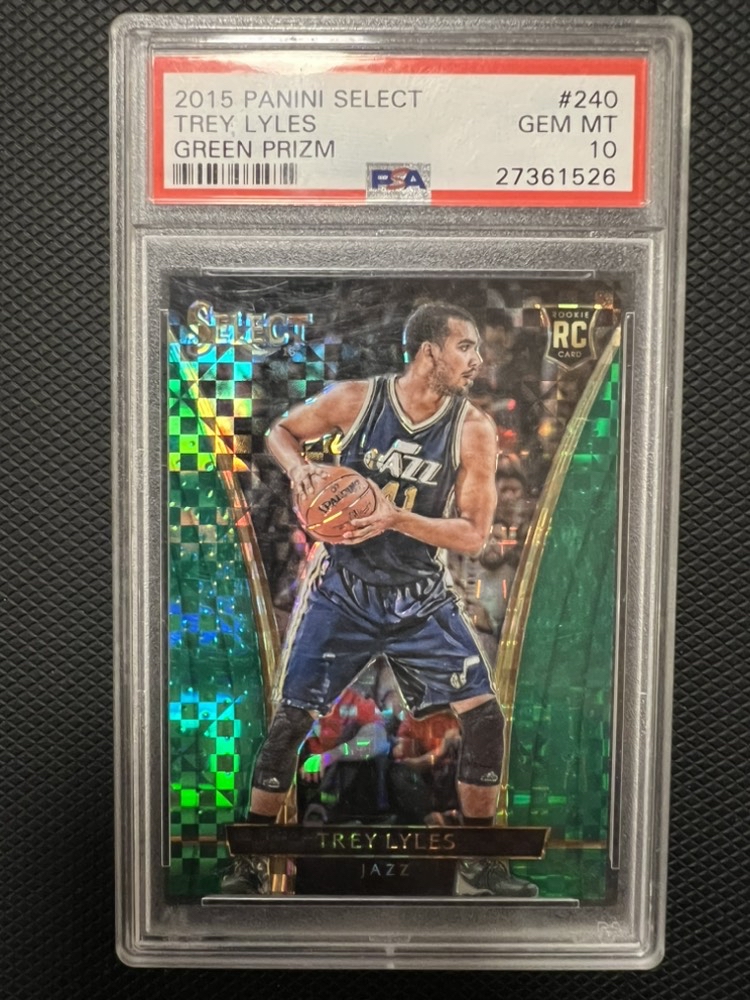 2015 Panini Prizm Trey Lyles RC 特雷莱尔斯 爵士掘金马刺活塞国王 Pz Select正新秀RC标折射绿折 低编限量4/5编 评级卡PSA10满分胜金标 类BGS