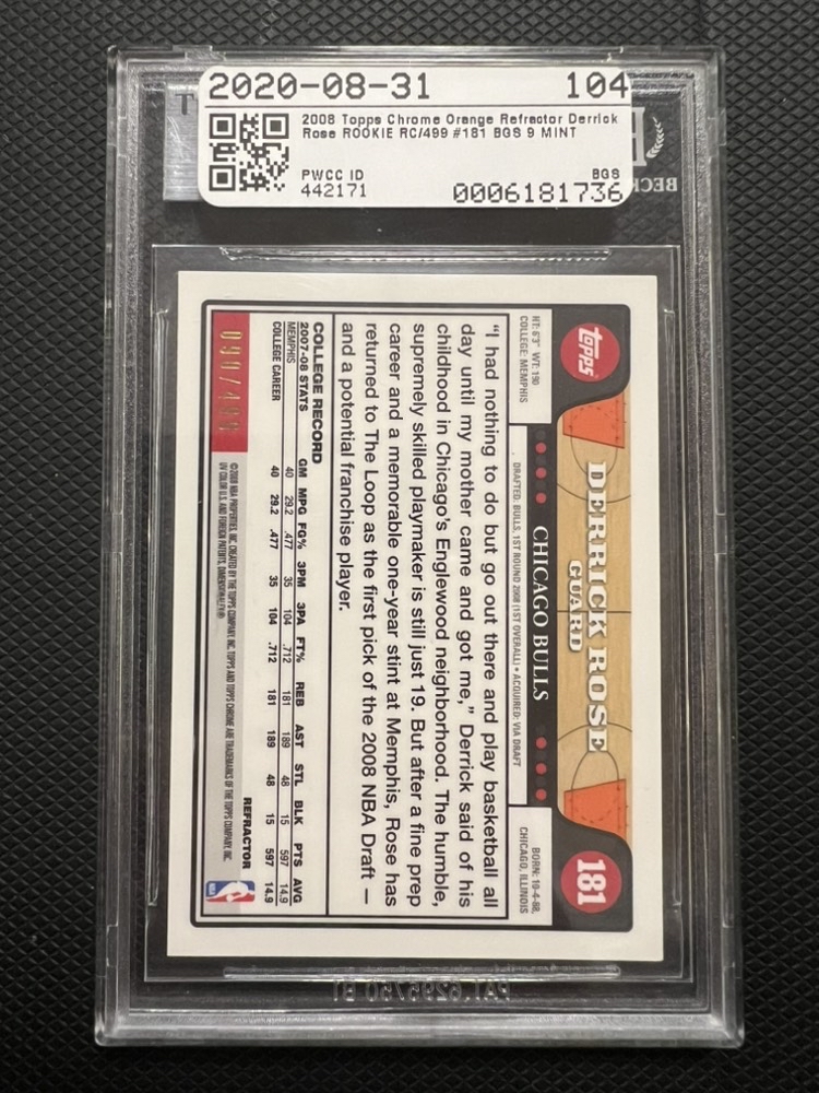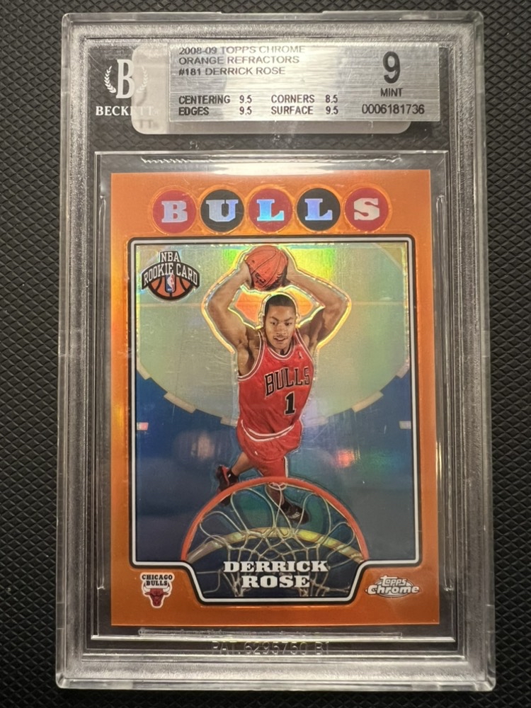 2008-09 Topps Chrome Derrick Rose RC 德里克罗斯 风城玫瑰 公牛森林狼活塞尼克斯灰熊 最佳新秀MVP Topps正新秀折射橙折 499编 评级卡BGS9 类PSA