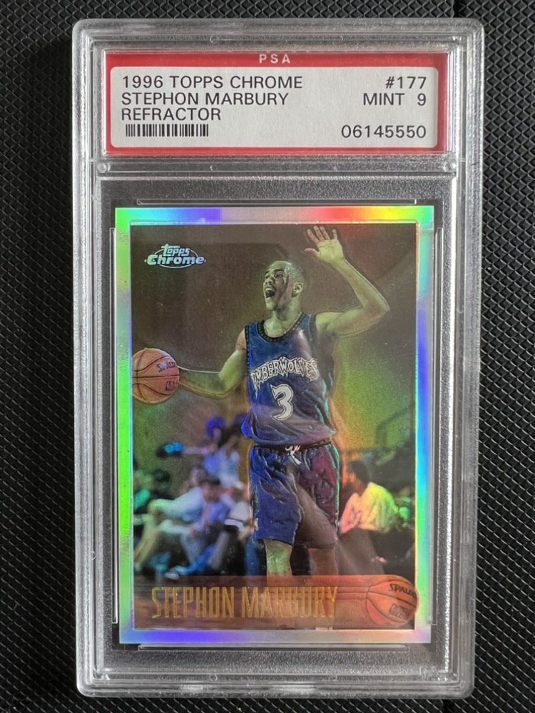 1996 Topps Chrome Stephon Marbury RC 斯蒂芬马布里 独狼马政委老马 森林狼篮网凯尔特人尼克斯首钢 新秀年RC 老特卡大比例 正新秀折射银折 评级卡PSA9 类BGS