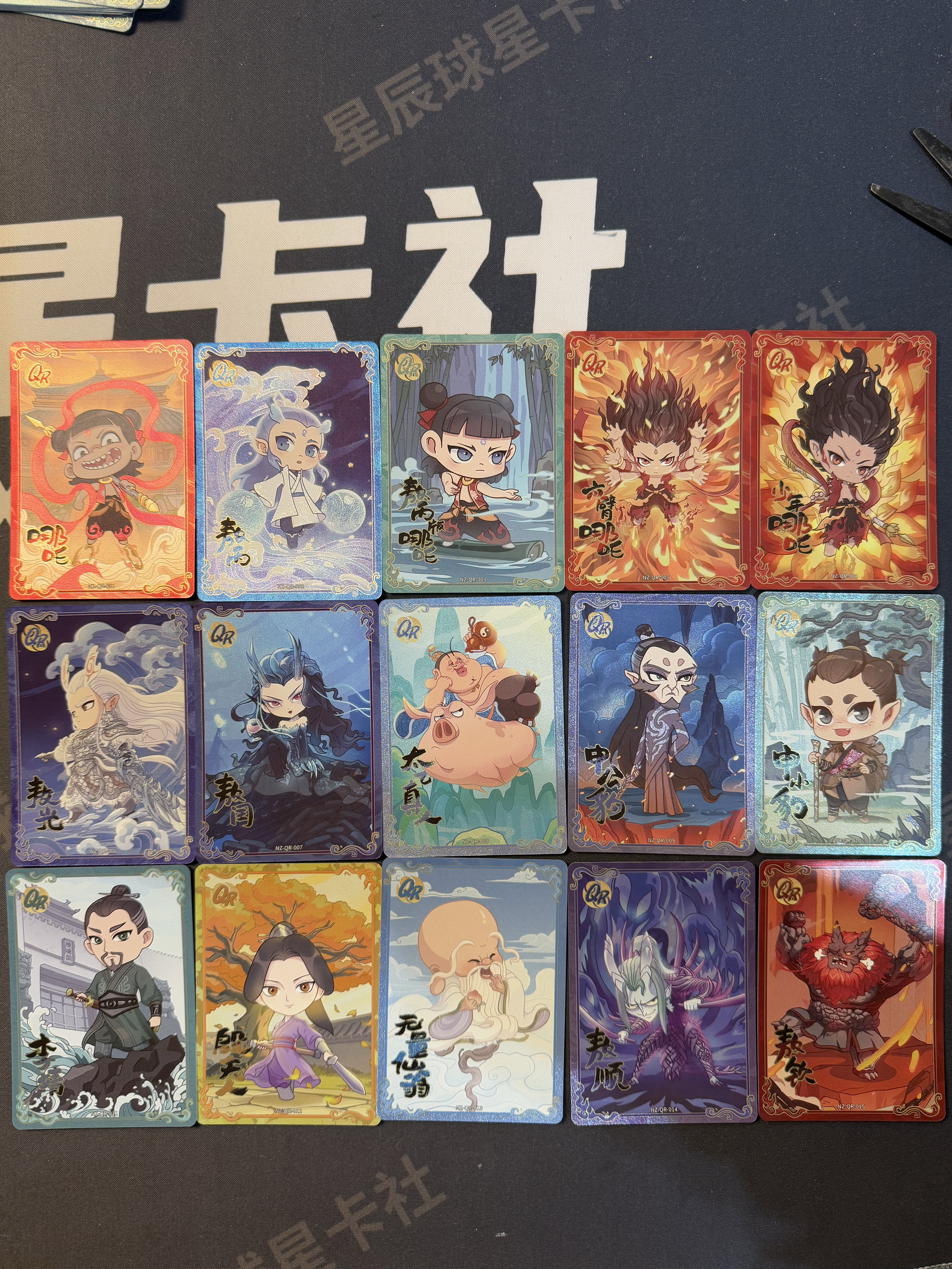 卡游 哪吒之魔童闹海 斗天包 Q版卡 QR卡 全套15张 1-15 哪吒 敖丙 申公豹 太乙真人 敖光 敖闰 卡片精美 收藏必备 随机发一套,1
