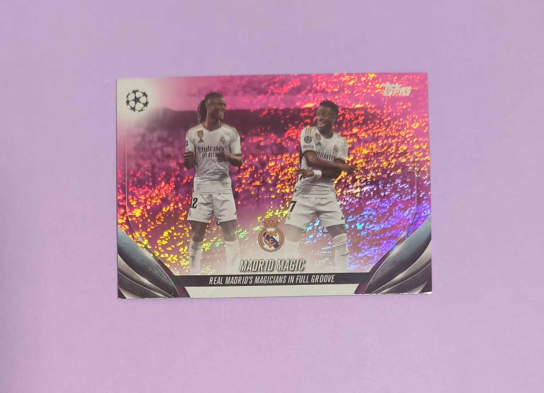 2023-24 Topps ucc Vinicius Junior topps 2024 欧战 皇马 维尼修斯 卡马文加 双人庆祝 紫碎冰 折射