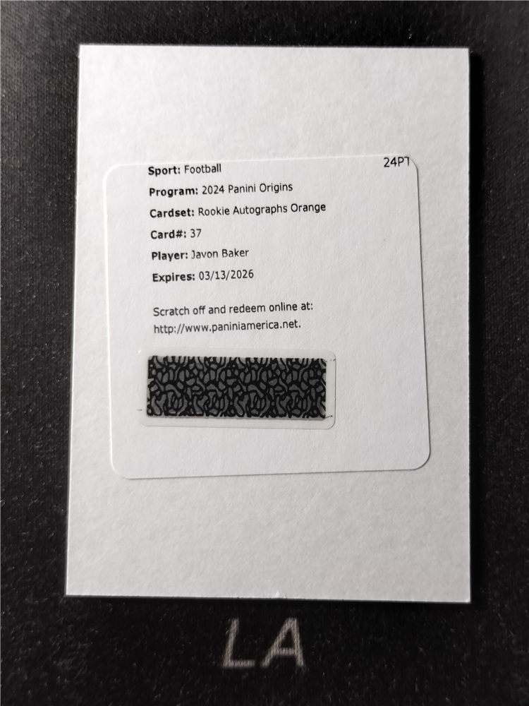 【LA拍卖】2024 Panini Origins Javon Baker 起源 橄榄球 新秀RC 贾旺 巴克 贝克 新英格兰爱国者队 橙版 新秀签 卡签签字 /75编 交换 L45B