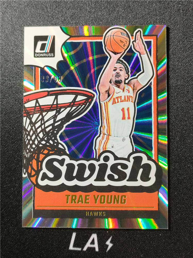 【LA拍卖】2024-25 Panini Donruss Trae Young 杜蕾斯 特雷 杨 吹杨 纽约市长 老鹰队当家球星 佛光折 Swish 特卡 99/99编 尾编 瑕疵如图 KK077
