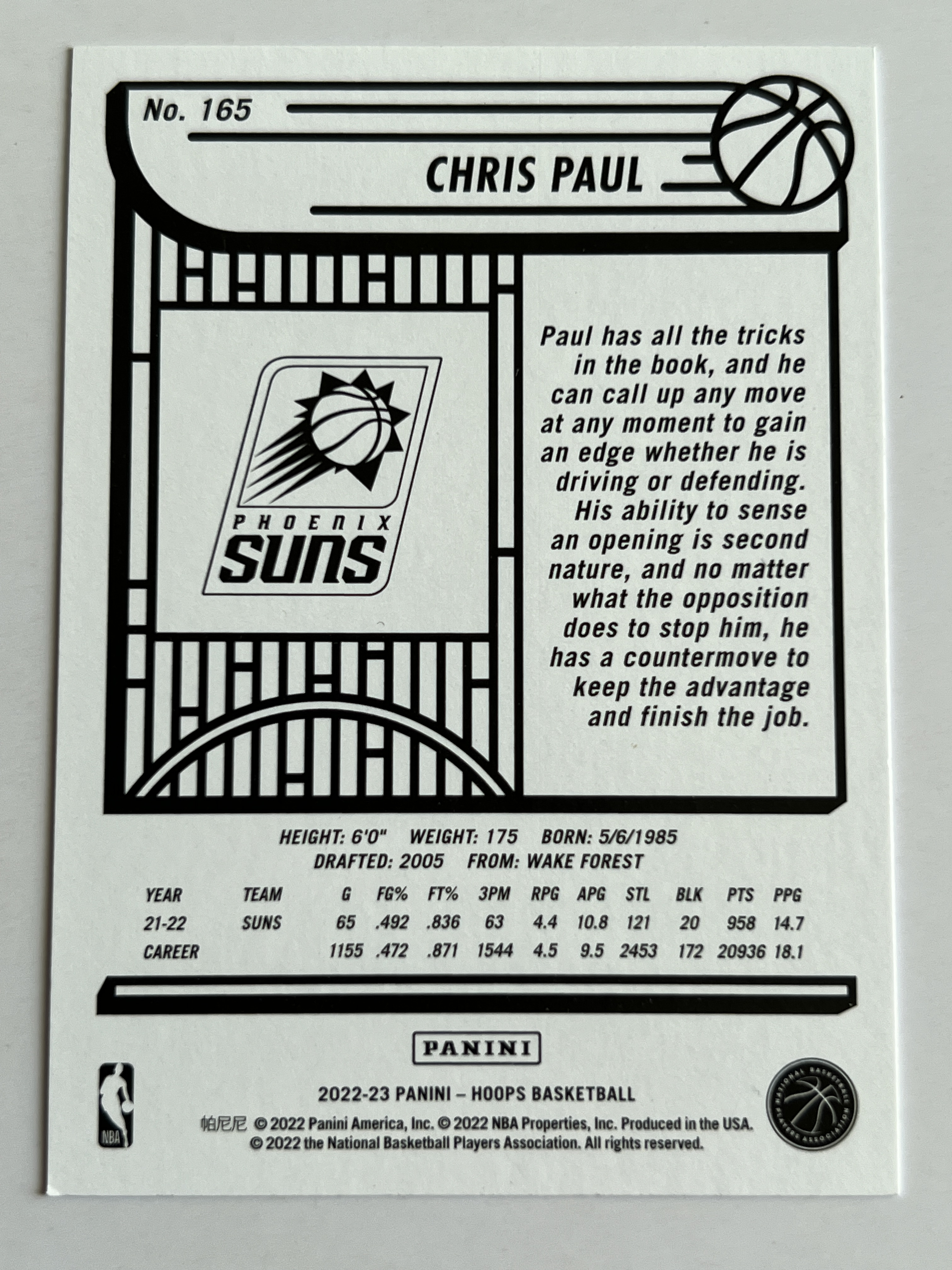 2022-23 Panini hoops Chris Paul 克里斯 保罗 CP3 太阳队 热门球星 收藏必备 可合并 可累积 #165