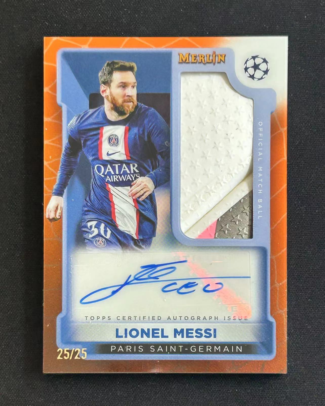 【长安代卖精品 截标预付80%】2022-23 Topps Merlin UCC 欧冠 梅林 Lionel Messi 巴黎圣日尔曼 里奥梅西 球皮签字 橙折 25/25编 低编 尾编 收藏必备 微瑕看大图【号如雪】(L)(X)