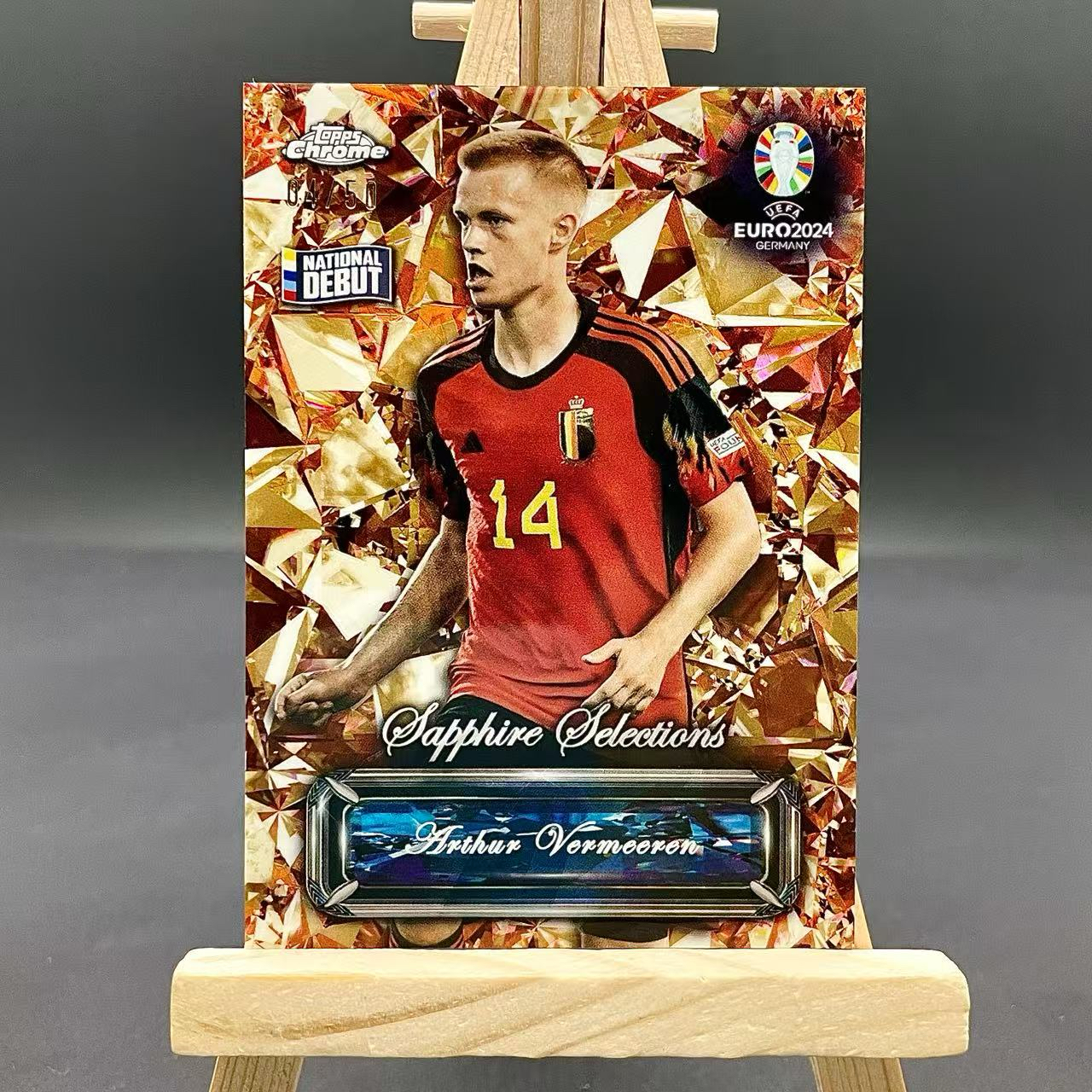 2024 Topps Chrome Arthur VERMEEREN 欧洲杯蓝宝石 比利时 费尔梅伦 国家队首秀 精选特卡 金碎冰折 50编 马竞 德布劳内队友 洛北拍卖 Zilch6706Q