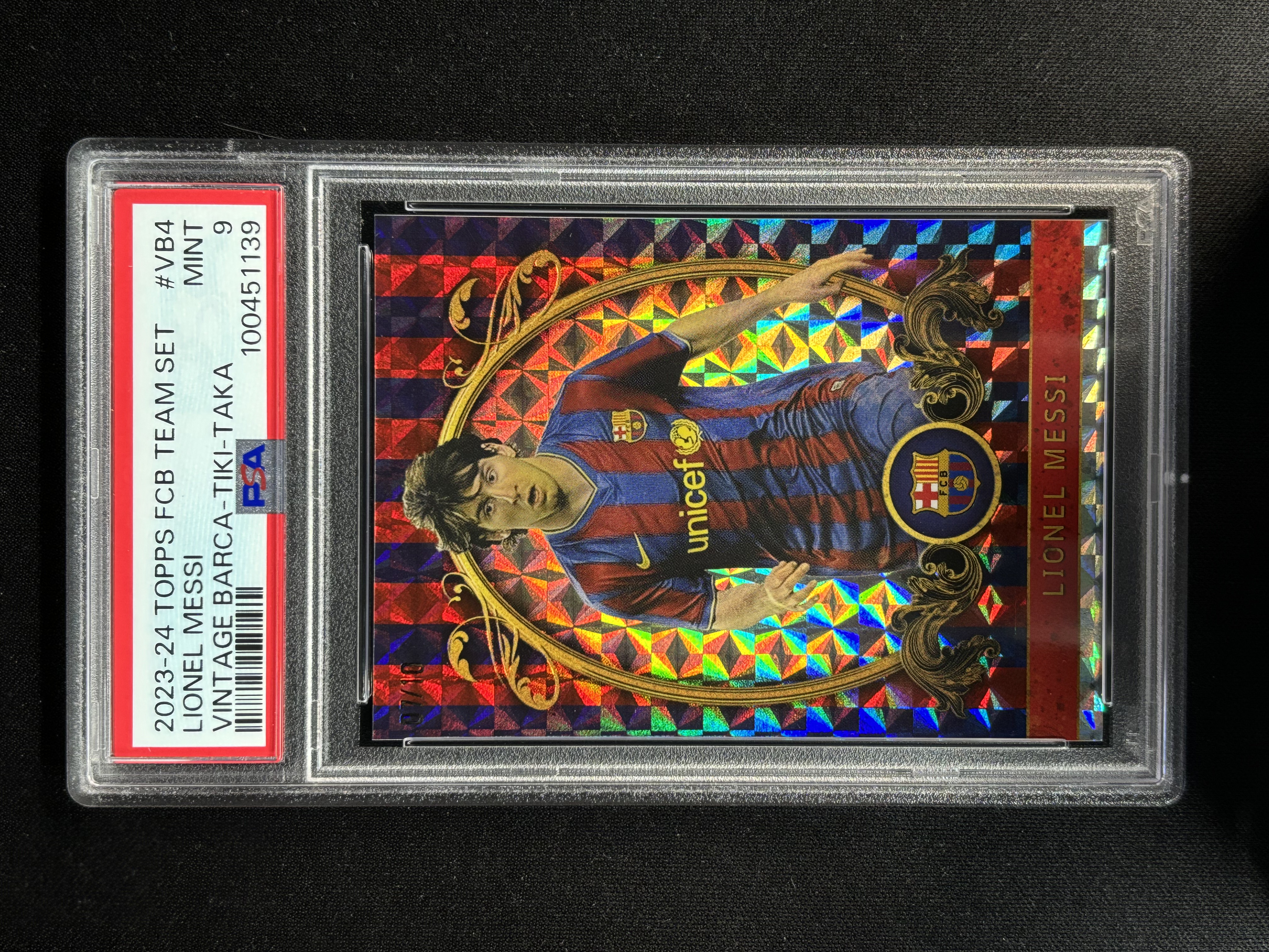 2023-24 Topps 巴萨队盒 Lionel Messi 西甲 巴塞罗那 里奥 梅西 梅老板 /10编 低编 马赛克折 折射 复古特卡 专收必备 PSA9分评级卡-BOB-【小幻拍卖】A