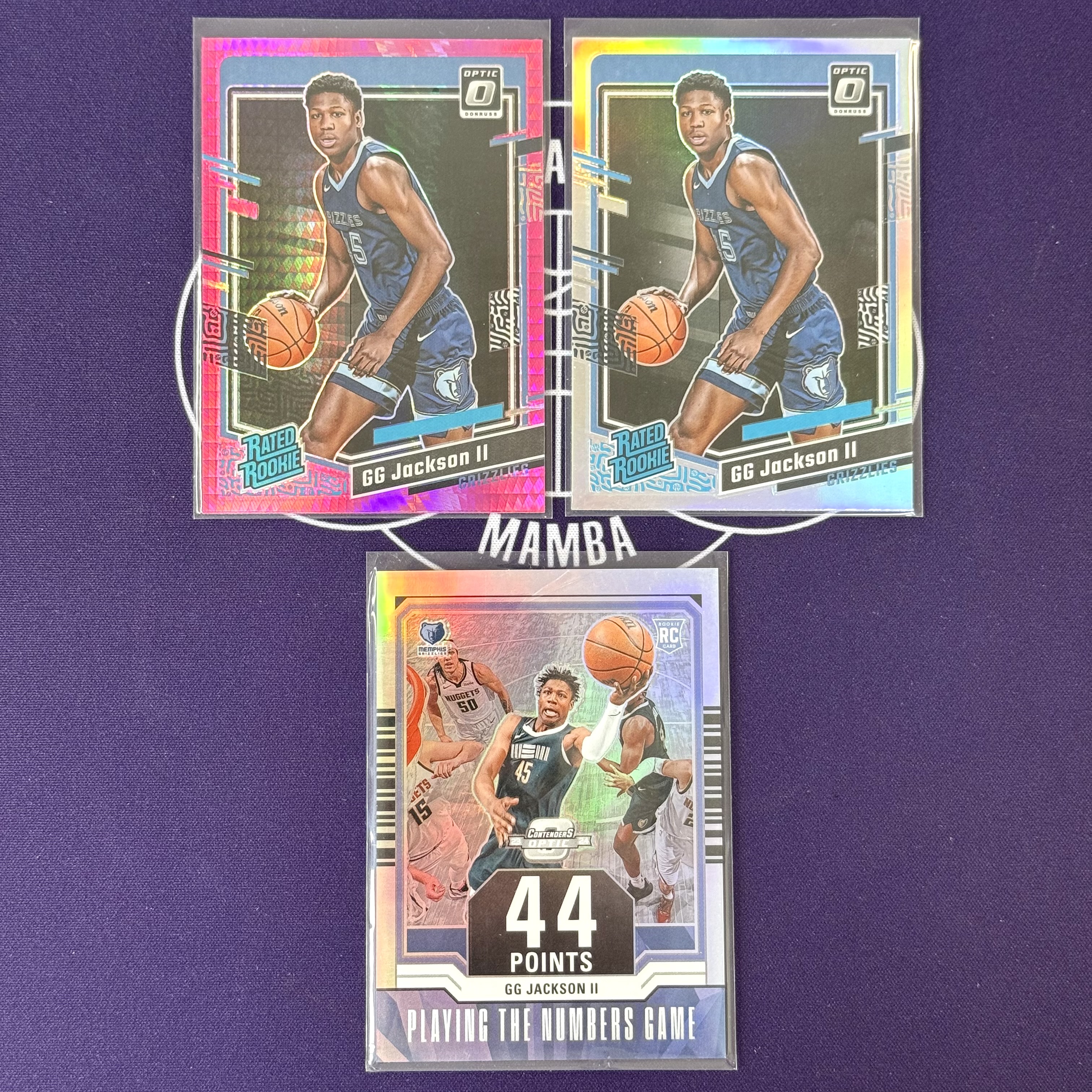 【824拍卖 0手续费】2023-24 Donruss Optic G.G. Jackson 杜蕾斯 球票OP 灰熊 新秀RC GG 杰克逊 粉Hyper折 银折 数据 特卡 打包lot RYO