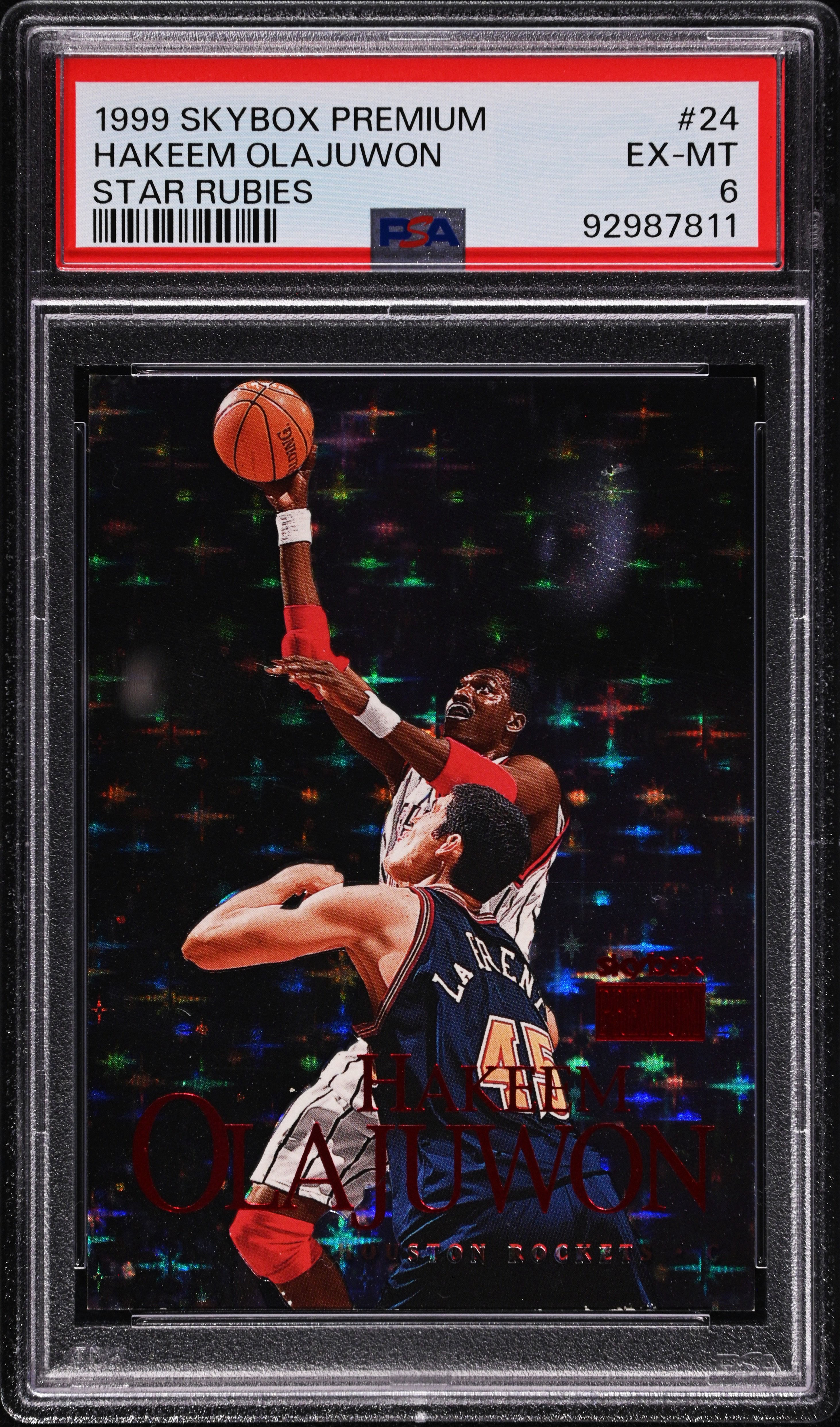 1999 SkyBox star rubies Hakeem Olajuwon jersey number 34/45