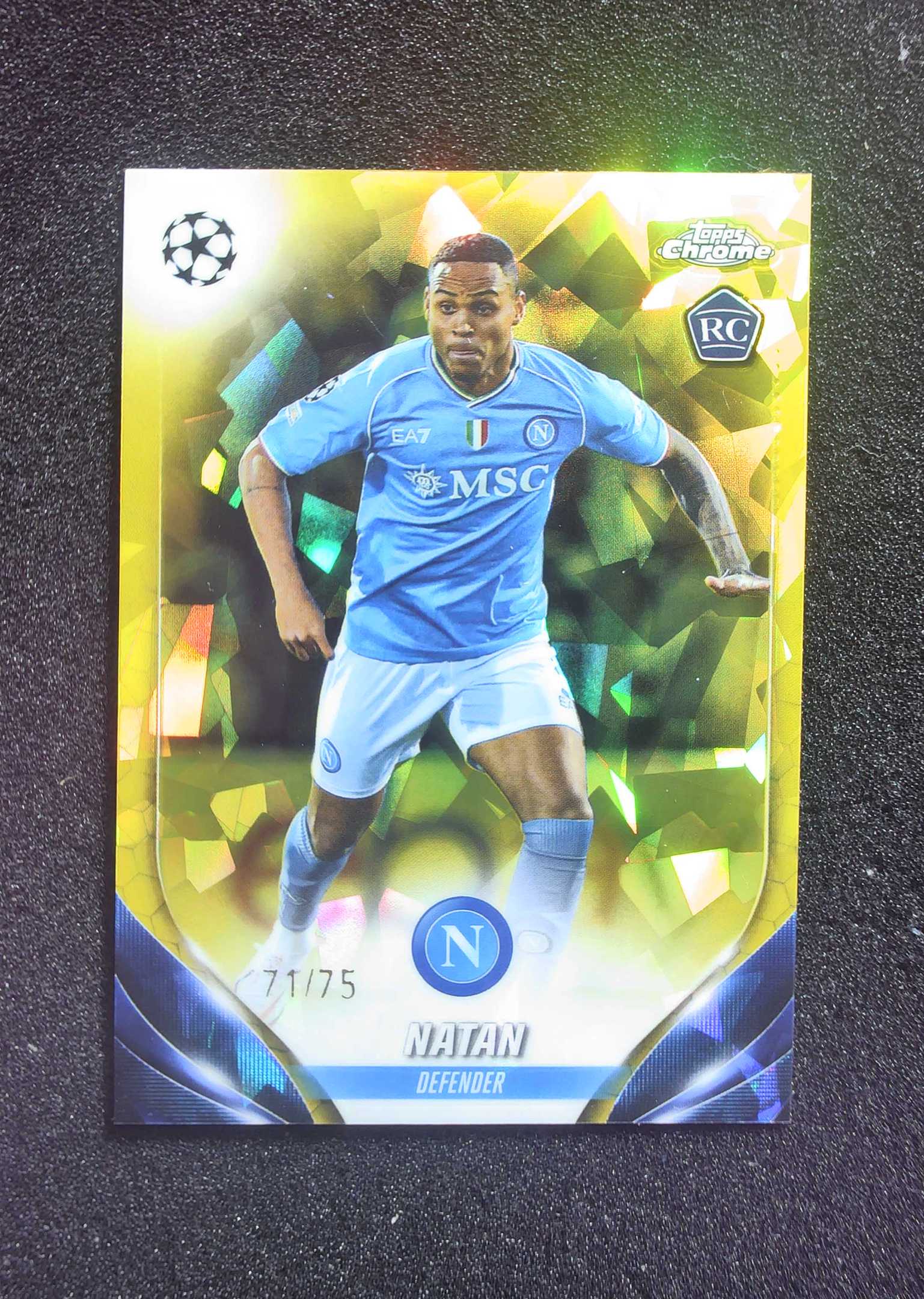 (代拍力 0手续费接代卖 当天满1000元包邮)2023-24 Topps Chrome 蓝宝石系列 基础卡 新秀 RC 那不勒斯 纳坦 Natan 黄碎冰折 71/75编 LB01