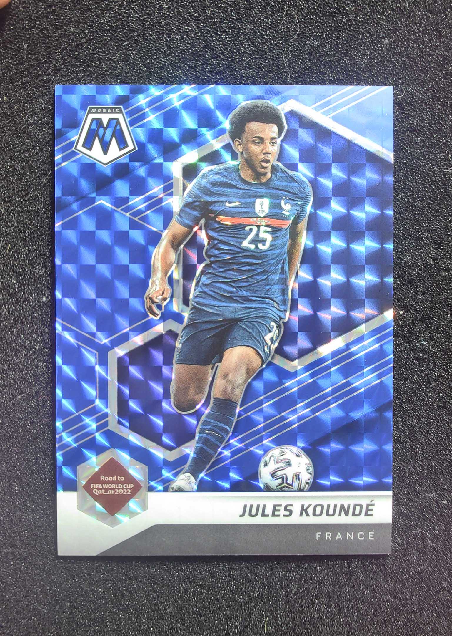 (代拍力 0手续费接代卖 当天满1000元包邮)2021-22 帕尼尼 Mosaic 世界杯 马赛克系列 基础卡 法国 巴萨 孔德 Jules Kounde 蓝马赛克折 31/99编 LB01