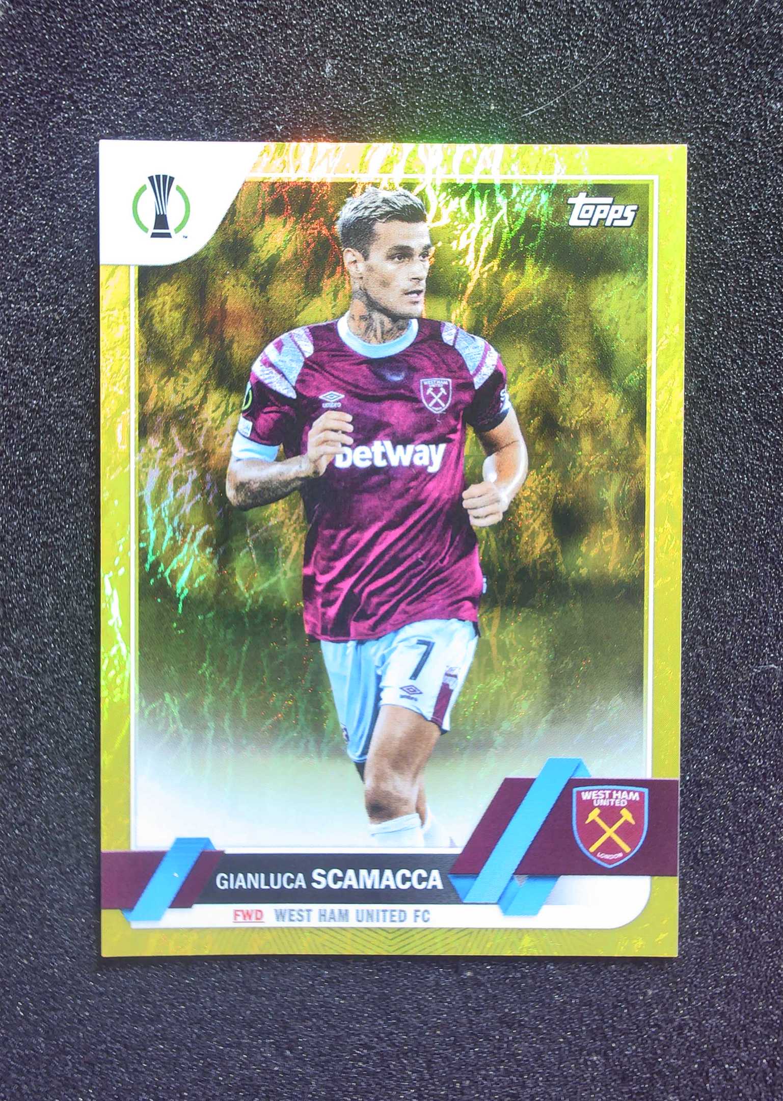 (代拍力 0手续费接代卖 当天满1000元包邮)2022-23 Topps UCC 欧战 碧玉系列 基础卡 西汉姆联 斯卡马卡 Gianluca Scamacca 黄玉折 14/50编 LB01