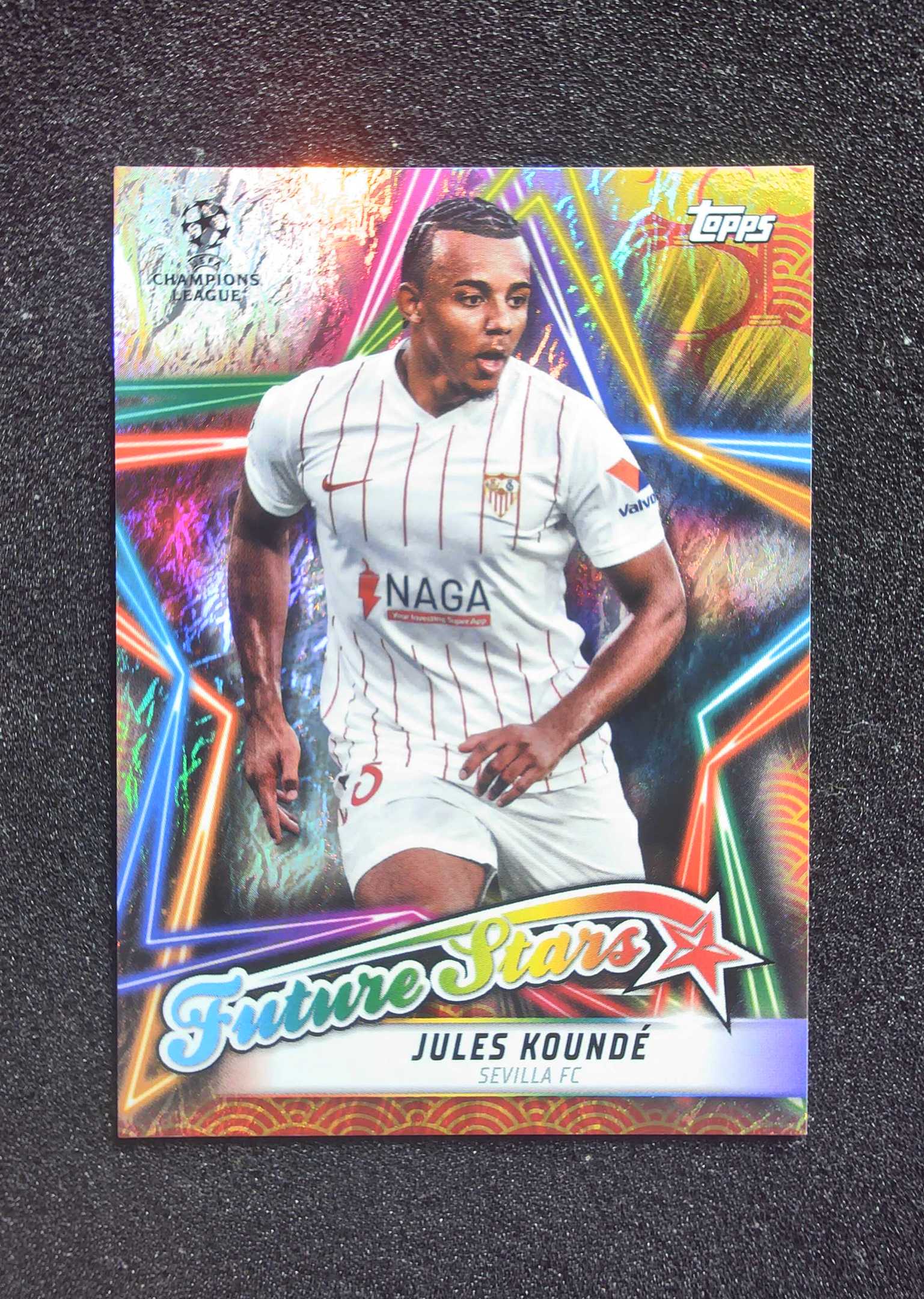 (代拍力 0手续费接代卖 当天满1000元包邮)2021-22 Topps UCC 欧战 碧玉系列 未来之星特卡 塞维利亚 巴萨 孔德 Jules Kounde 橙玉折 043/125编 LB01