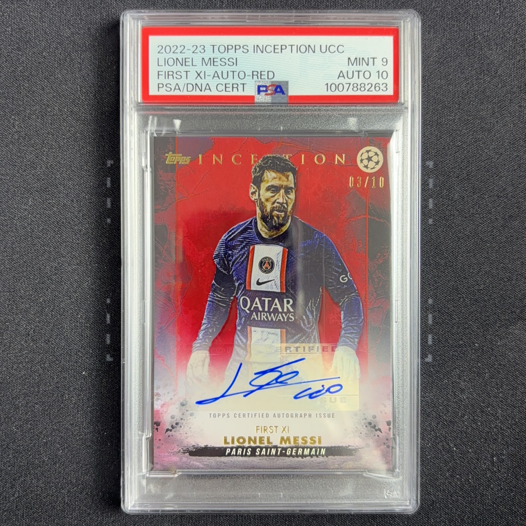 2022-23 Panini TOPPS INCEPTION UEFA CLUB COMPETITIONS Lionel Messi 盗梦空间 巴黎 梅西 签字 10编 低编 红平行 psa9/10