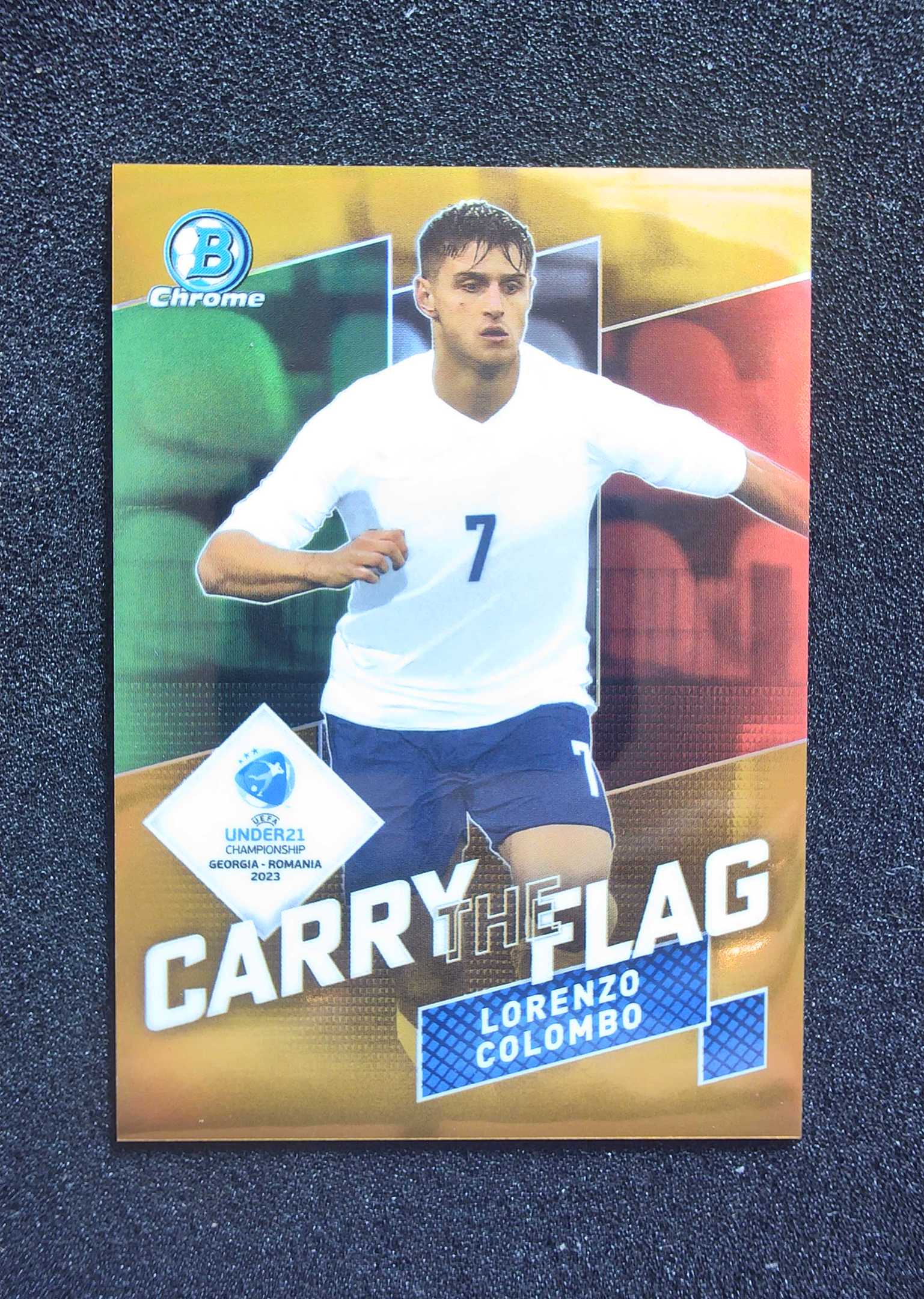 (代拍力 0手续费接代卖)2022 Topps Bowman Chrome U21欧青赛系列 Carry The Flag 旗帜特卡 意大利 科隆博 Lorenzo Colombo 01/50编