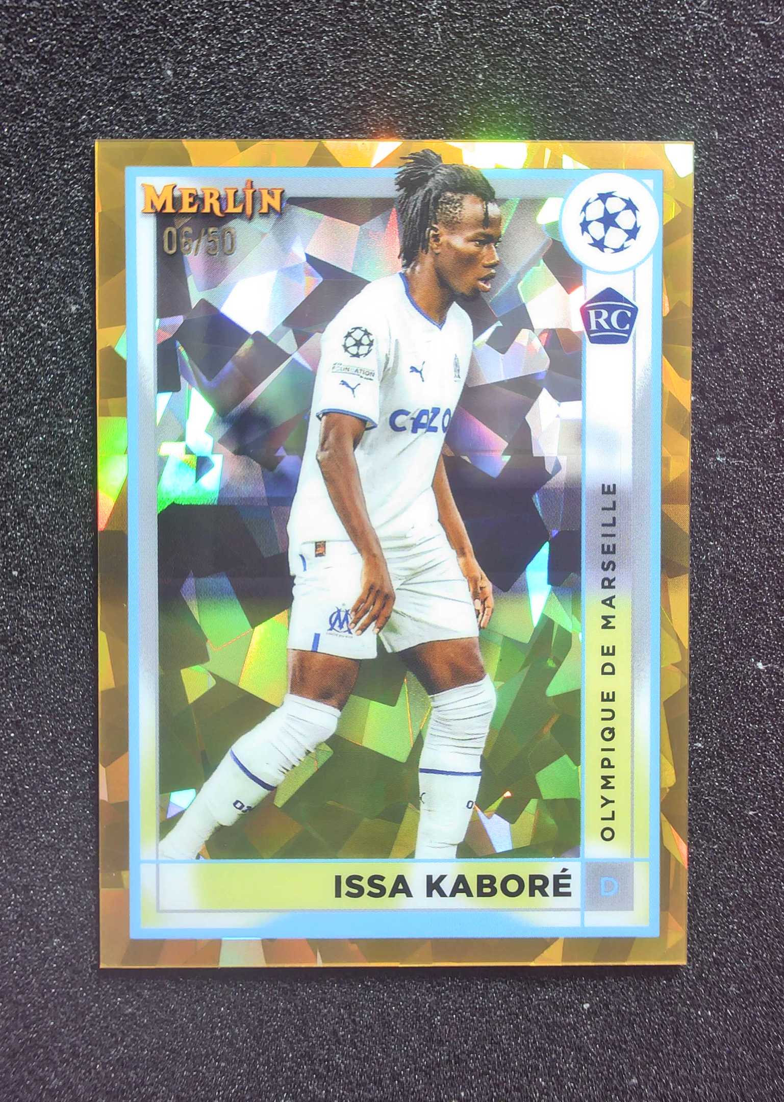 (代拍力 0手续费接代卖 当天满1000元包邮)2022-23 Topps Merlin 梅林系列 基础卡 新秀 RC 马赛 伊萨 卡博雷 Issa Kabore 金碎冰折 06/50编 LB01