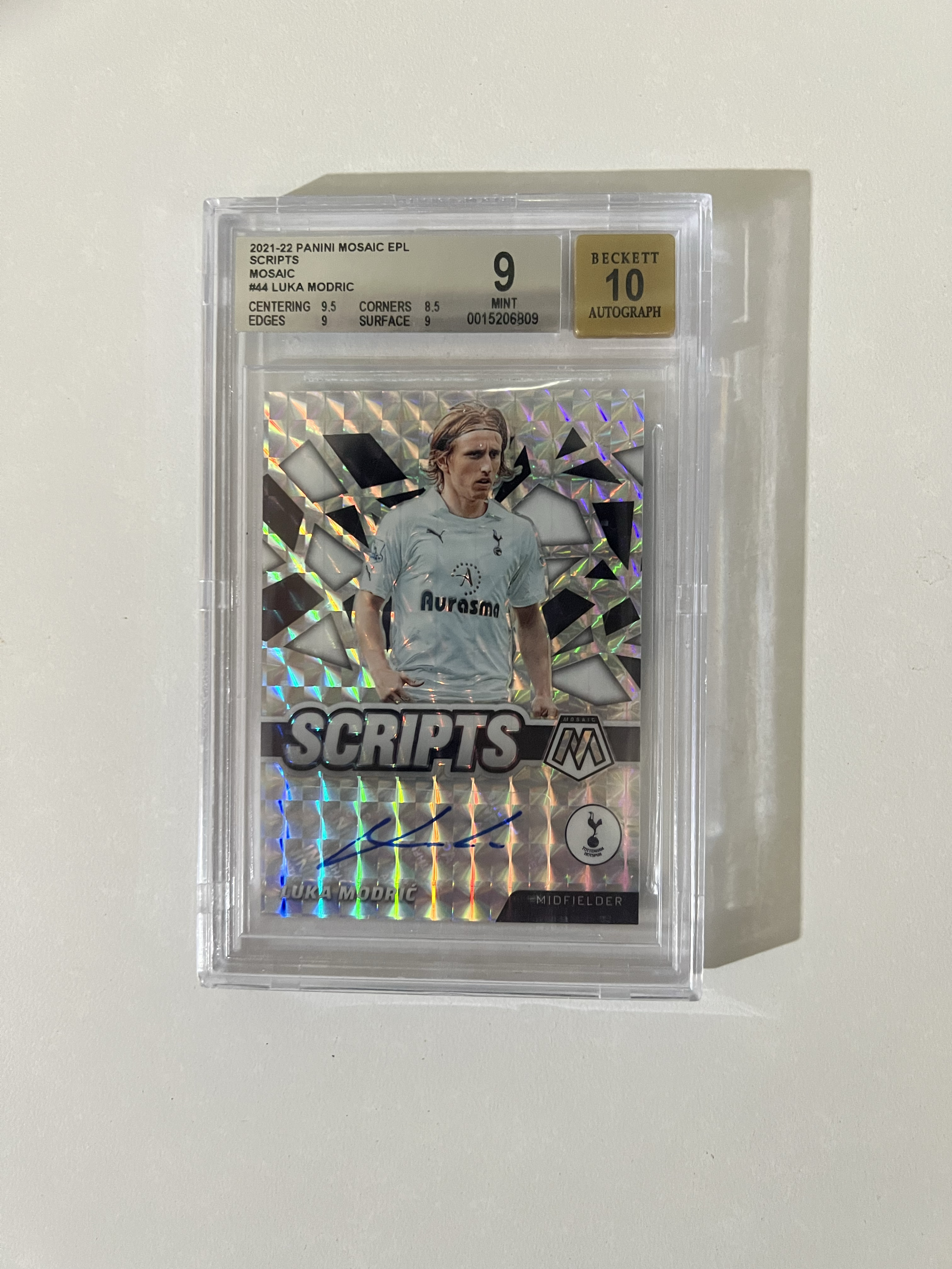 2021-22 Panini Mosaic Luka Modric 卢卡 莫德里奇 魔笛 皇马 克罗地亚 热刺 英超 马赛克 Scripts 特卡 签字 折射 BGS评级 鉴真封装 已续约皇马