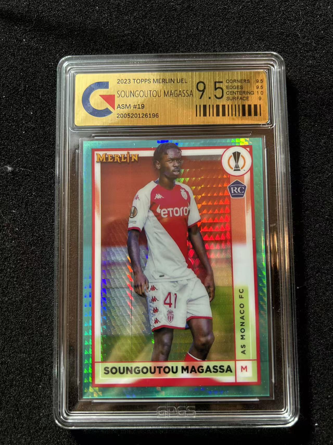 (代拍力 0手续费接代卖)2022-23 Topps Merlin 梅林系列 基础卡 新秀 RC 摩纳哥 马加萨 Soungoutou Magassa 绿脉冲折 无编 GPGS评级9.5分 LB01
