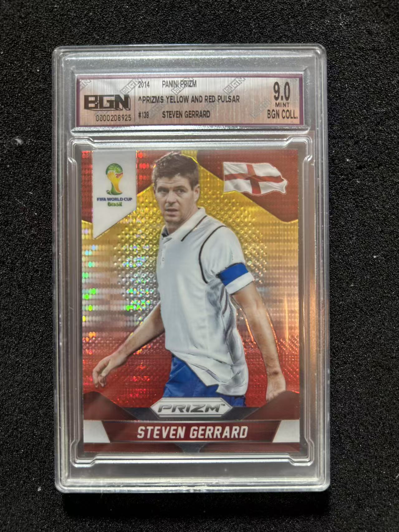 (代拍力 0手续费接代卖 当天满1000元包邮)2014 帕尼尼 元年 世界杯 Prizm系列 基础卡 英格兰 杰拉德 Steven Gerrard 红白黄脉冲折 无编 BGN评级 9分 LB01