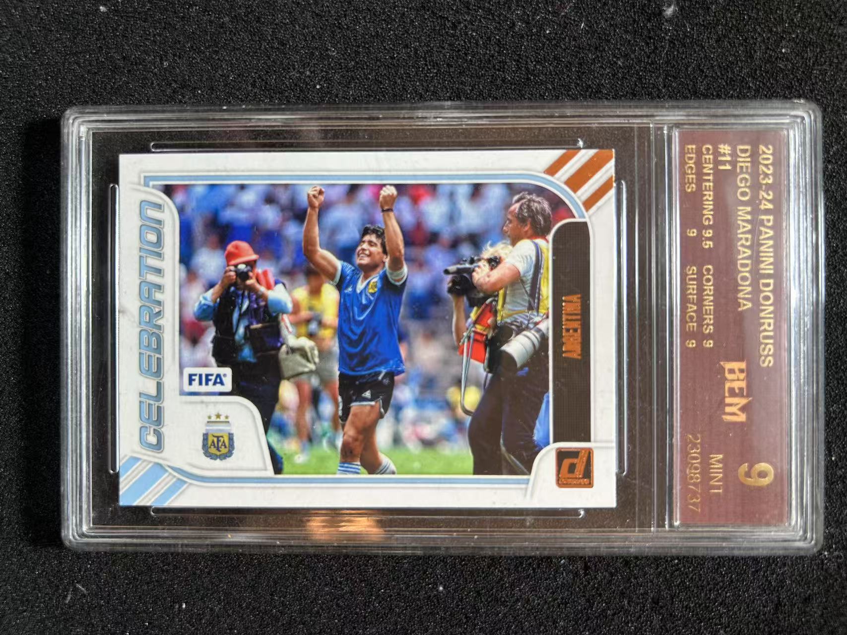 (代拍力 0手续费接代卖 当天满1000元包邮)2023-24 帕尼尼 Donruss 杜蕾斯系列 庆祝特卡 阿根廷 马拉多纳 Diego Maradona 无编 BEM评级 9分 LB01