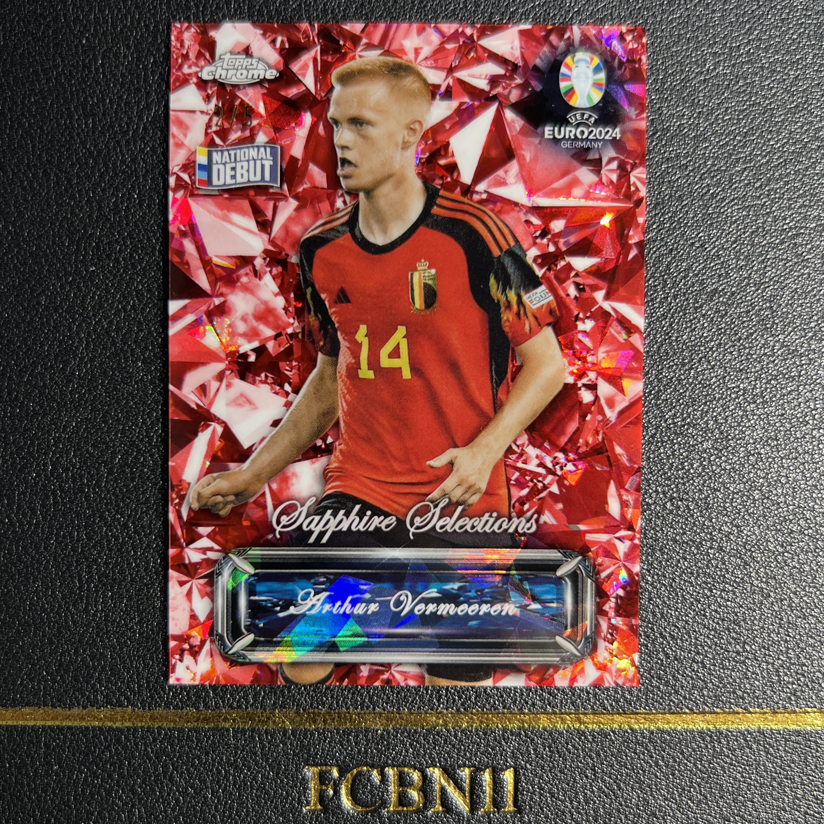 【FCB拍卖】2024 TOPPS CHROME ARTHUR VERMEEREN 费尔梅伦 5编 2/5 红碎冰 红宝石 精选 国家队首秀 比利时 马竞 马德里竞技 欧洲杯 蓝宝石 微瑕 COLOR MATCH{NNN35}FCBN11