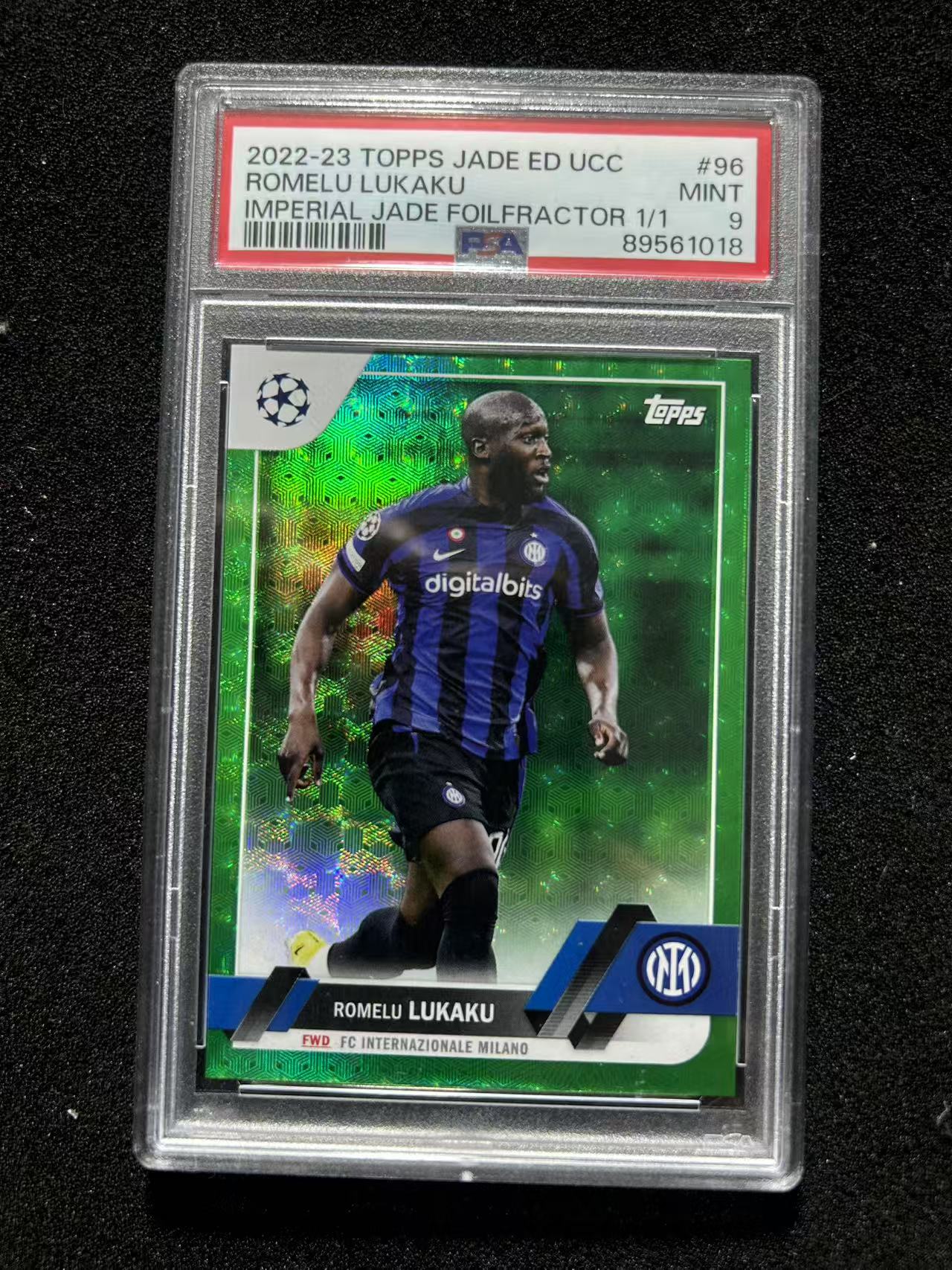 (代拍力 0手续费接代卖)2022-23 Topps UCC 欧战 碧玉系列 基础卡 国米 切尔西 那不勒斯 曼联 比利时 卢卡库 Romelu Lukaku 帝王绿 1/1编 PSA评级 9分