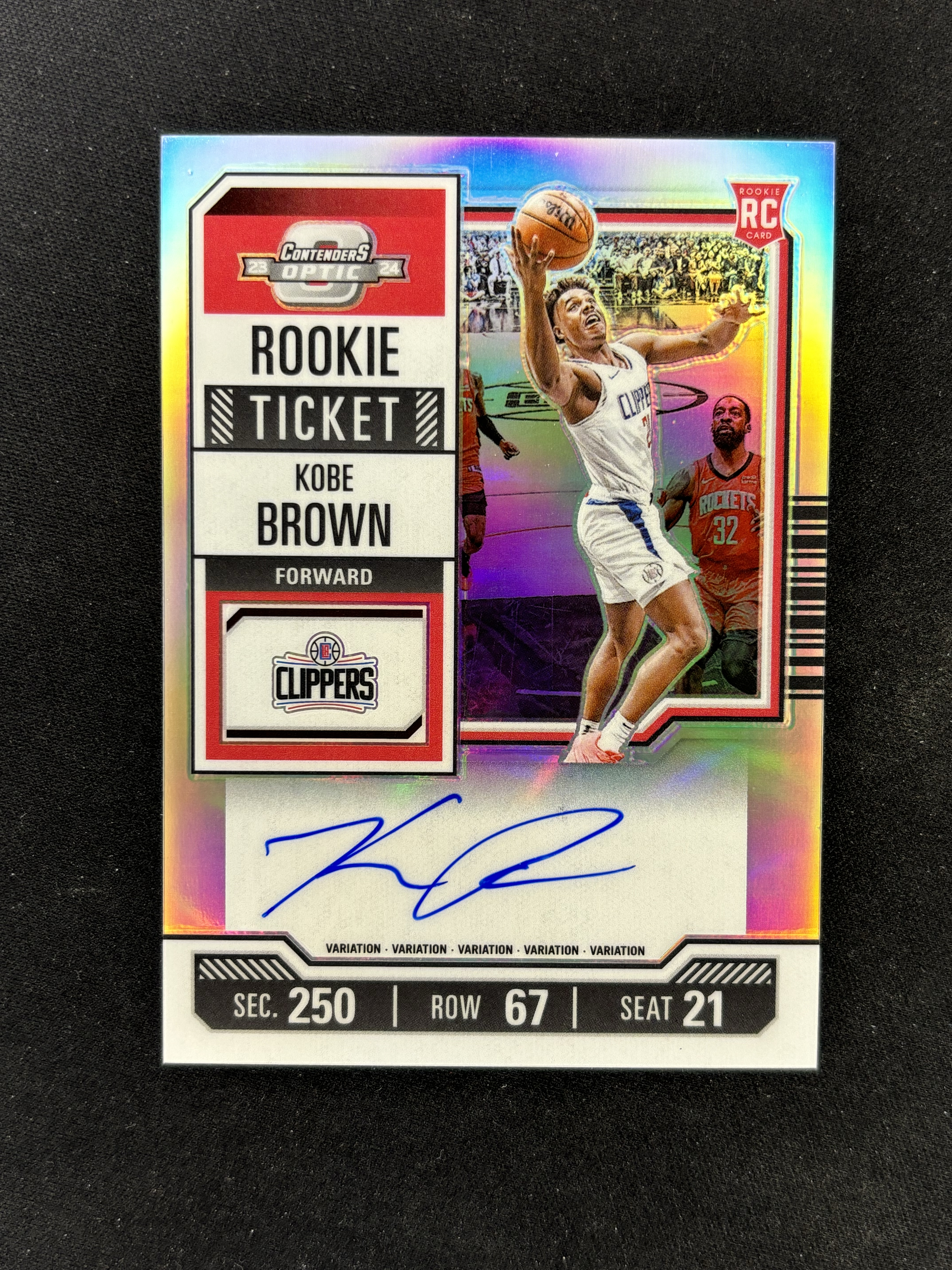 2023-24 【杰瑞拍卖】 Contenders Optic Kobe Brown 球票Optic 科比布朗 新秀 变化版 签字 卡签 银折 潜力无限 未来全明星 卡角轻微磨损(卡卡星331)