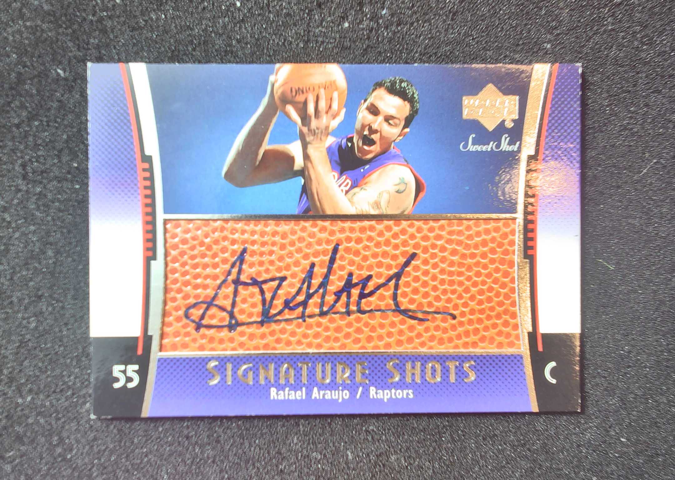 (代拍力 0手续费接代卖)2004 UD Upper Deck Sweet Shot系列 球皮物料签字卡 卡签 猛龙 拉菲尔 阿鲁尤 阿劳约 Rafael Araujo 无编 有白角 NN01