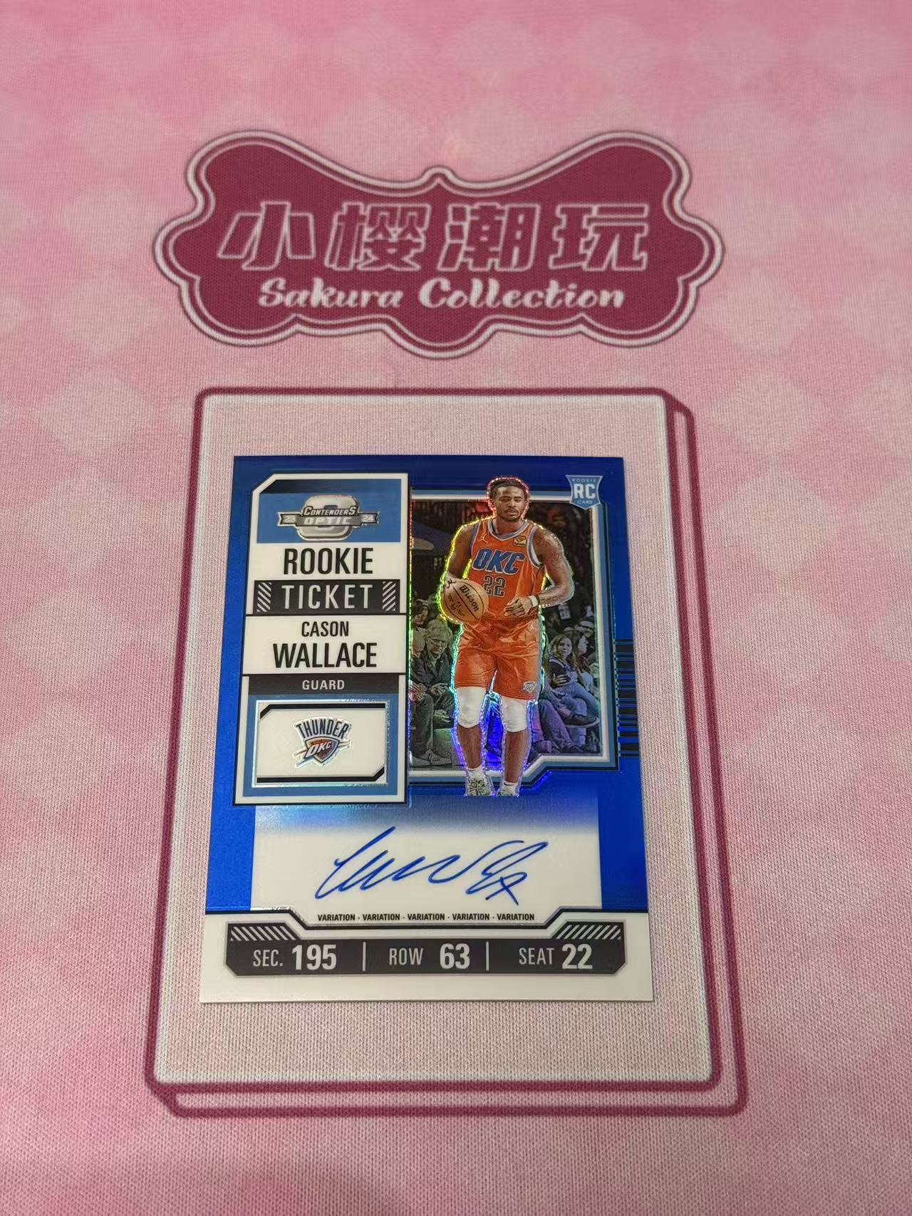 2023-24 Panini Contenders Optic Cason Wallace RC 篮球 雷霆 卡森 华莱士 凯森 球票OP 新秀 37/49编 签字 卡签 蓝折 卡品如图 Pink