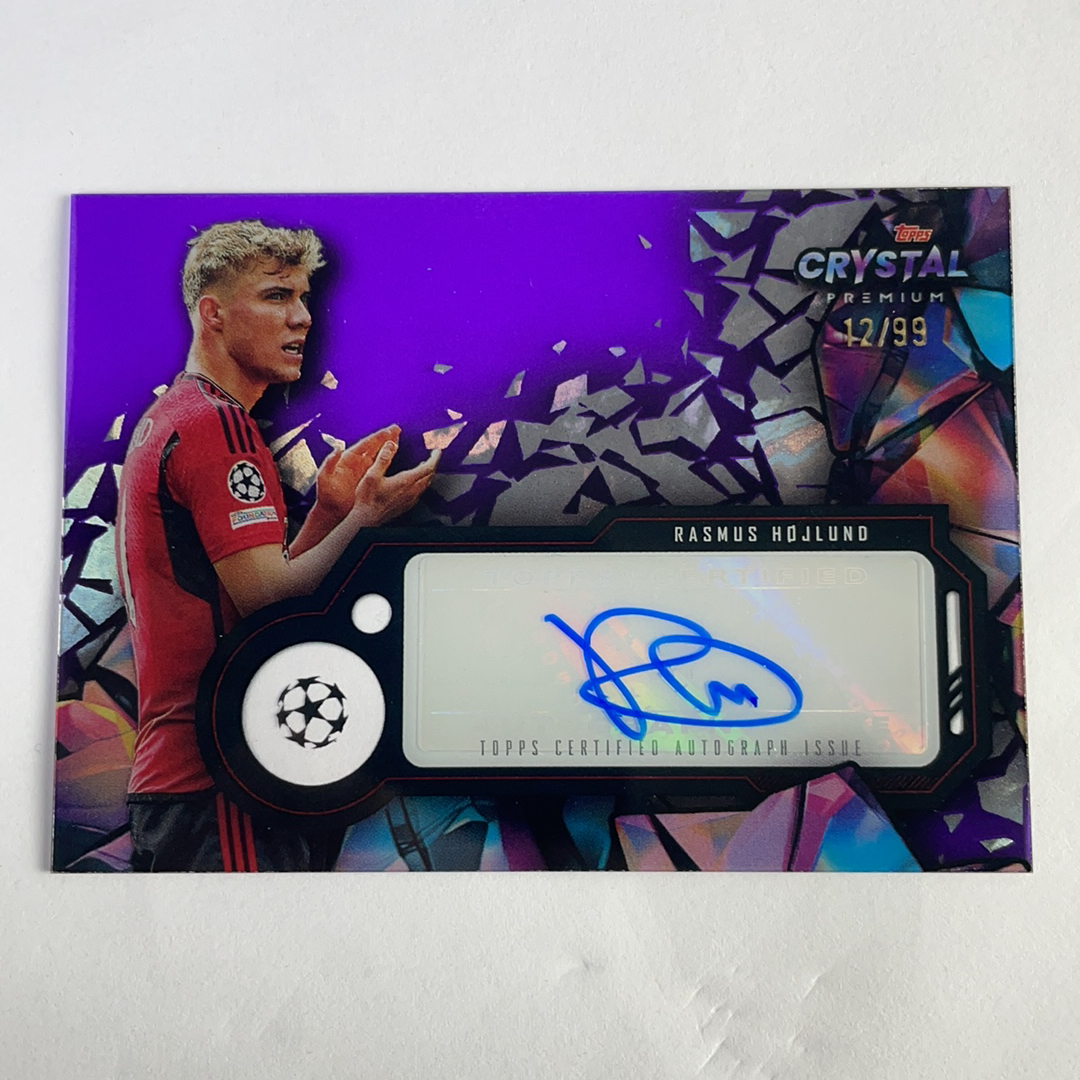 2023-24 Topps crystal hojlund 水晶 胶片 紫折 签字 12/99编 霍伊伦德 曼联 收藏必备!终
