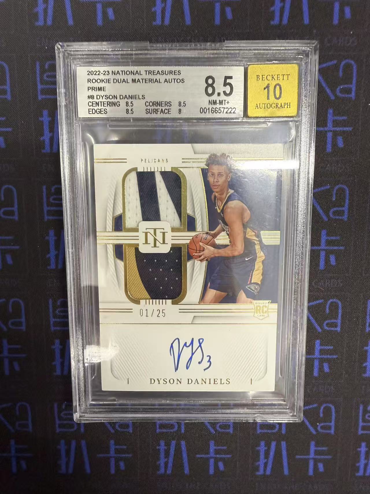 【扒卡拍卖】2022-23 Panini National Treasures Dyson Daniels 国宝 戴森 丹尼尔斯 鹈鹕 新秀RC 吹风机 签字 卡签 1/25编 首编 RPA 球衣 BGS8.5+10 捧杯0411BK02