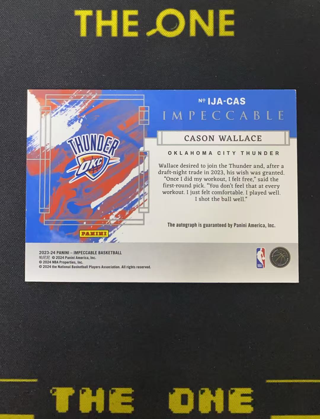 2023-24 Panini Impeccable Cason Wallace RC 【TheOne】卡森 华莱士 雷霆新秀 小真金 10/22编 闪版 数据签 球衣背号 签字 卡签【G小白】