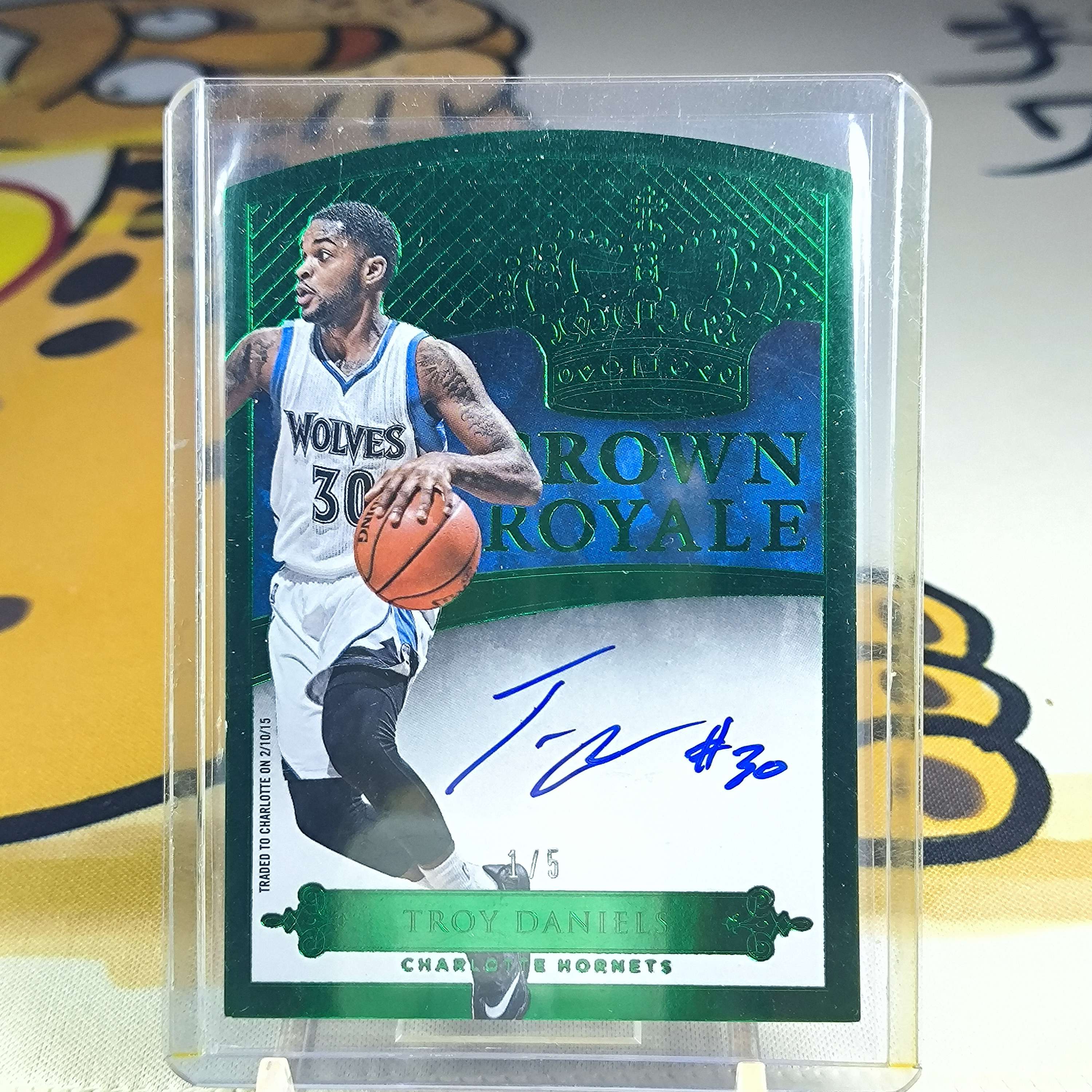 【滚筒代卖 手续超低】TROY DANIELS 特洛伊 丹尼尔斯 14-15 CROWN 异形切割1/5编 绿平行 首编背号卡签 森林狼队 卡品如图