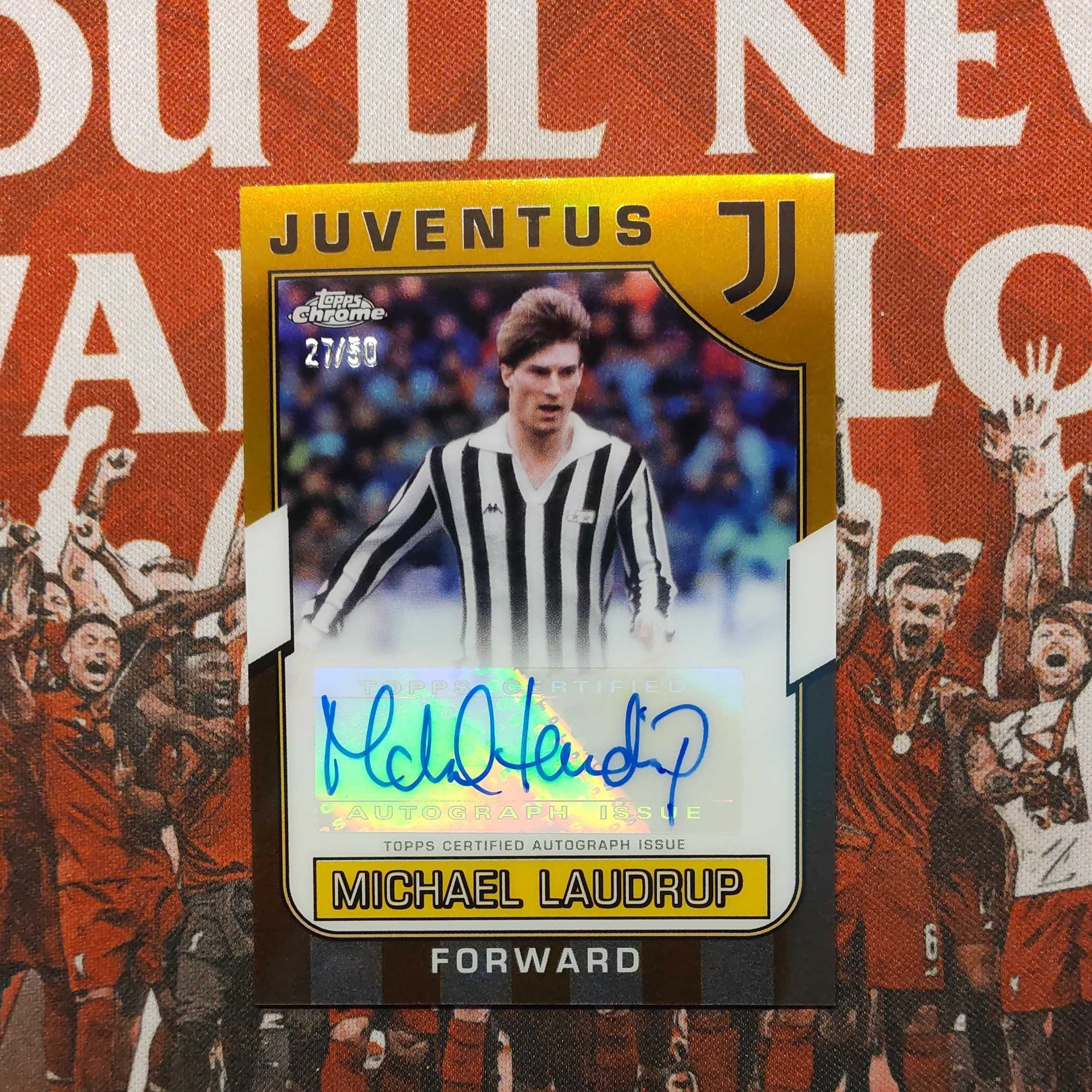 2023 Topps UEFA Champions League Michael Laudrup 利记小铺 尤文图斯tc 劳德鲁普 50编 正金折签字 完美签 27/50 卡品如图 鸭哥 巴塞罗那
