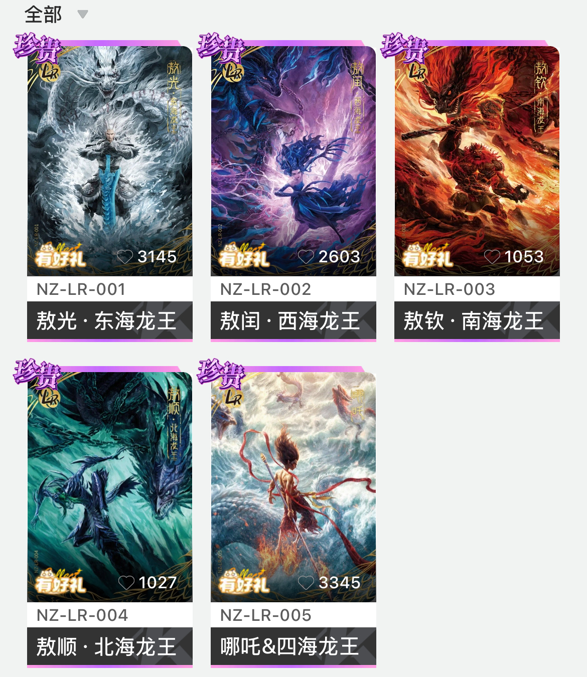 卡游 哪吒 斗天包 EX版 LR 5张全套 打包出 敖光 敖闰 敖钦敖顺 哪吒 抽卡机直发 不包厂瑕 KAYOU