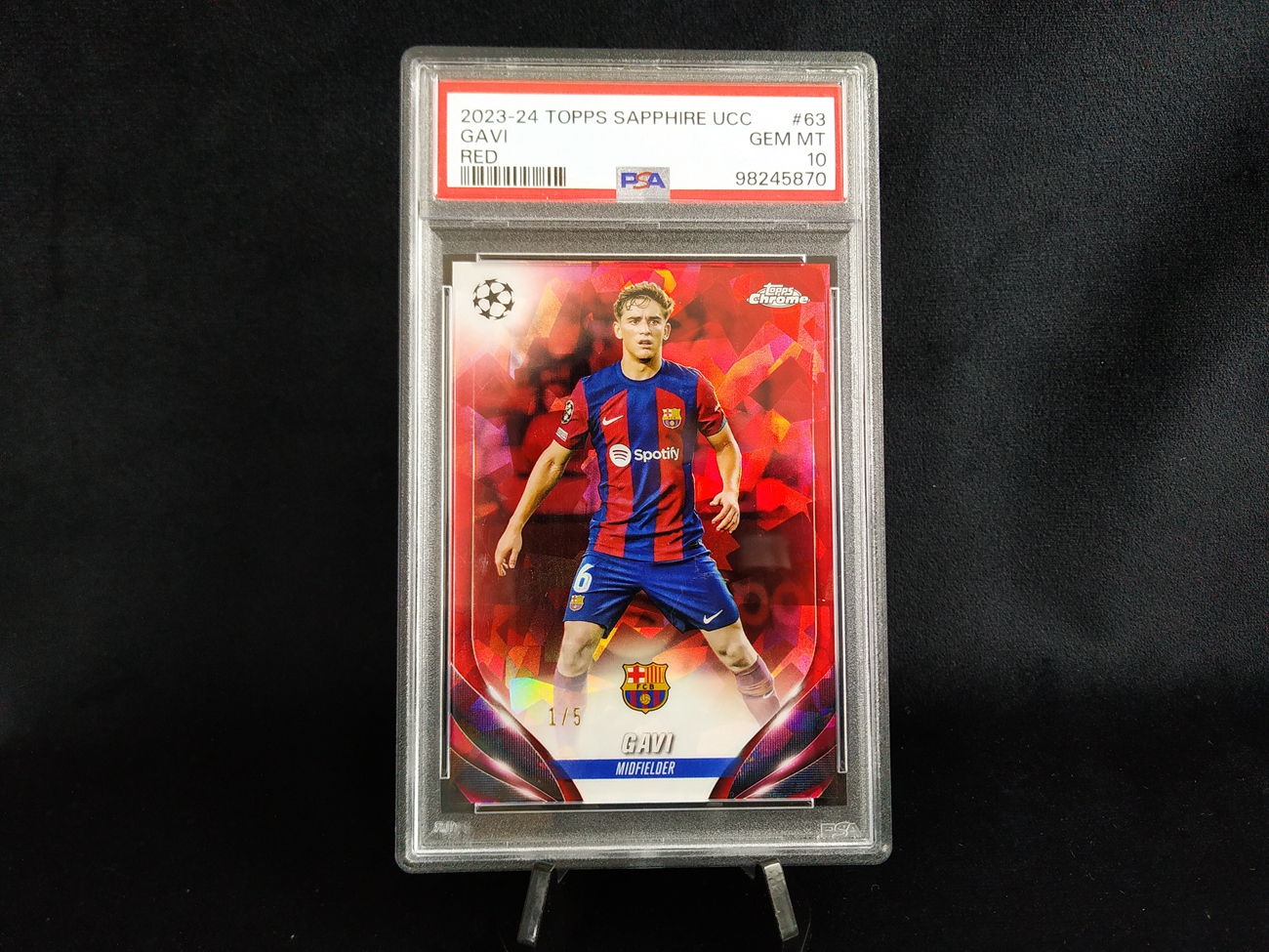 4-19【钢蛋儿拍卖】wabcd 606 topps 2023-24 欧冠 欧战 Chrome 蓝宝石 巴萨 红碎冰折 1/5编 首编 加维 Gavi