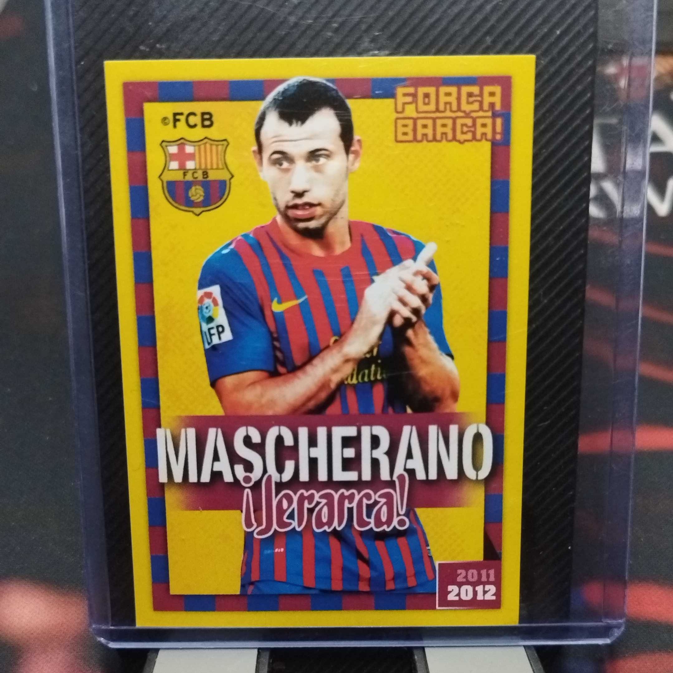 2011-12 Panini FC Barcelona Javier Mascherano 巴塞罗那 贴纸 早期 复古 贴纸 夺冠成员 格子彩虹相框 贴纸 大比例 收藏必备