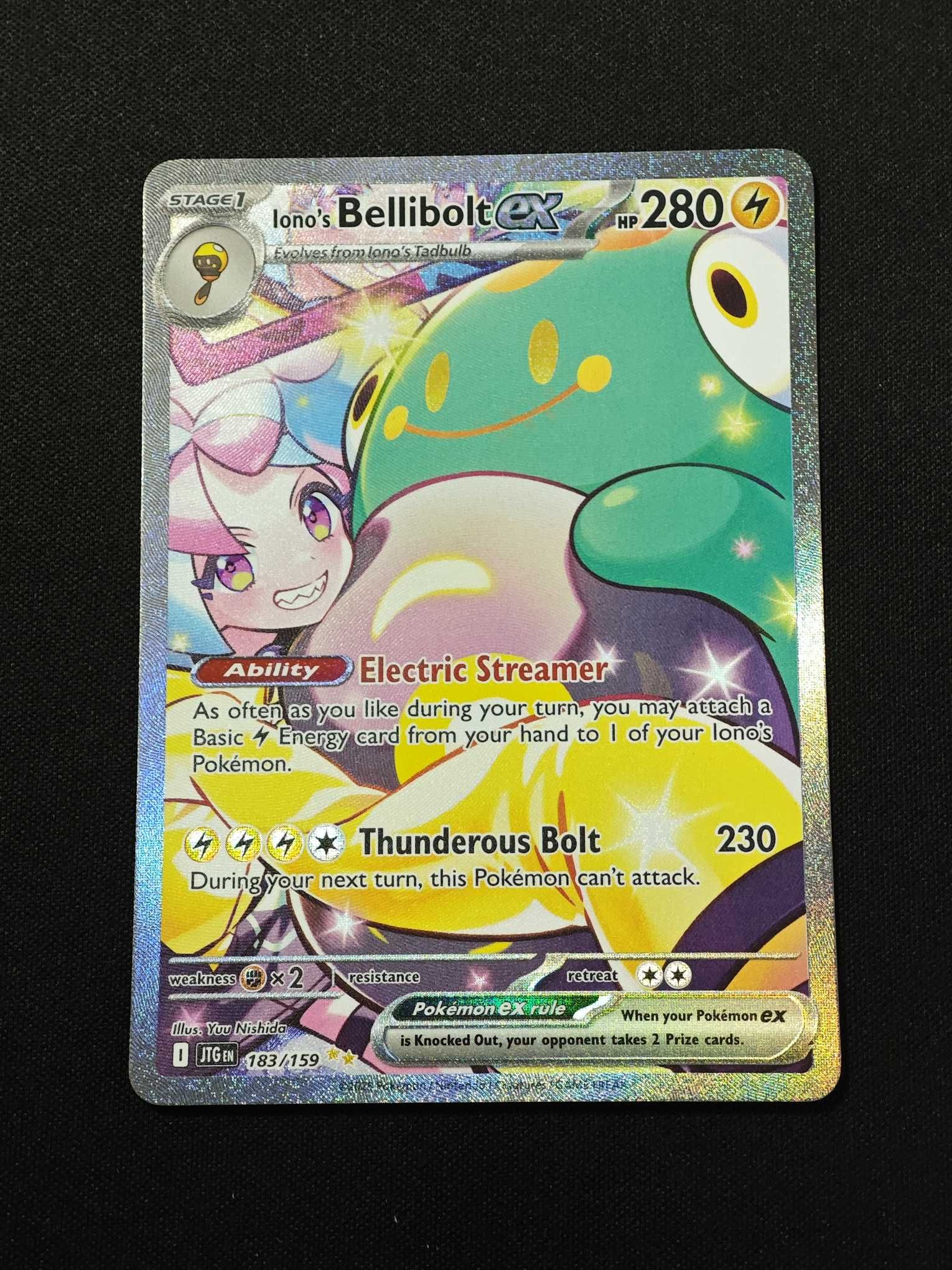 2025 Pokemon TCG 同行之旅JTG 奇树的电肚蛙ex(Iono's Bellibolt ex) JTG-183/159 en SAR 闪卡 高罕 打牌 精美 裸卡默认微瑕 无事拍卖-🌶️