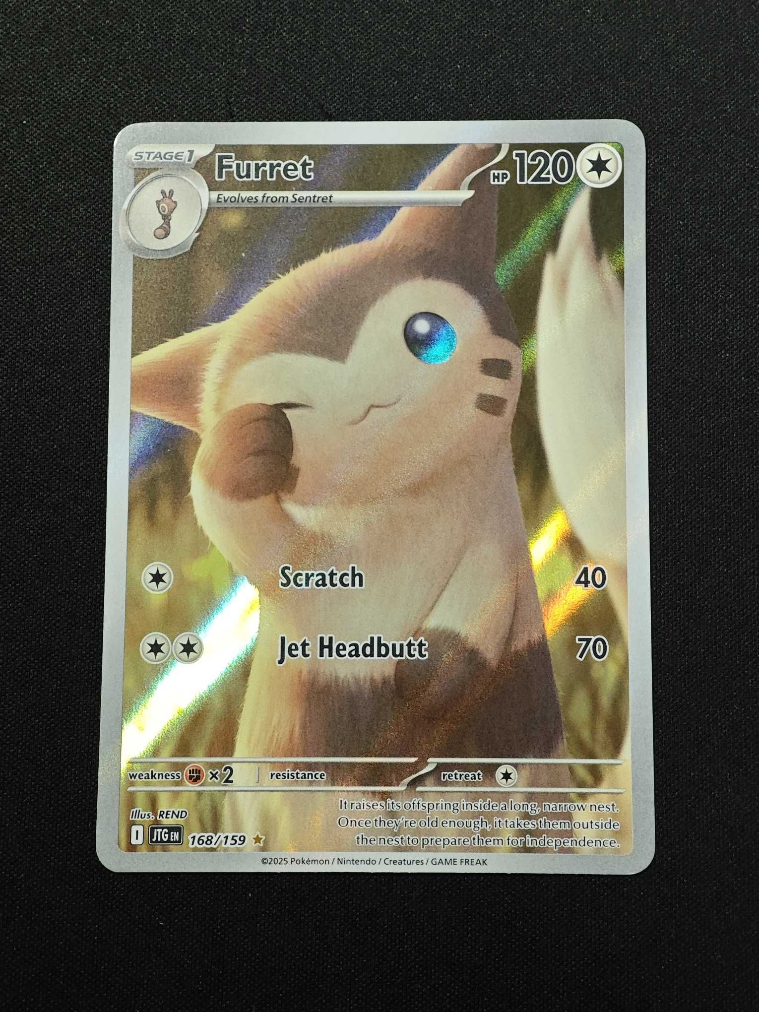 2025 Pokemon TCG 同行之旅JTG 大尾立(Furret) JTG-168/159 en AR 闪卡 高罕 打牌 收藏 凑套 实卡精美 裸卡默认微瑕4 无事拍卖-🌶️