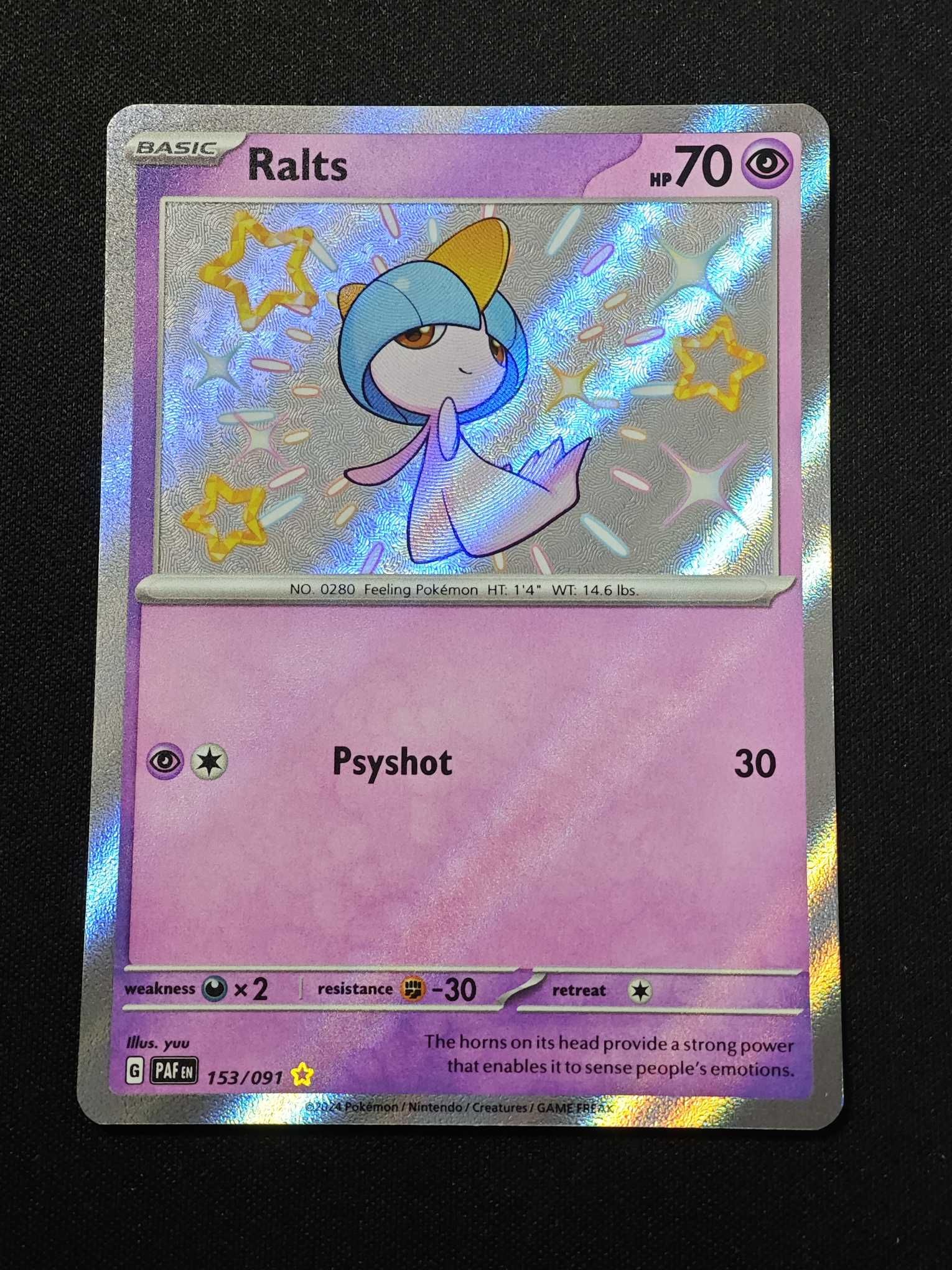 2024 Pokemon TCG 帕底亚命运PAF 拉鲁拉丝(Ralts) PAF-153/091 en S闪 闪卡 高罕 打牌 收藏 凑套 实卡精美 裸卡默认微瑕 无事拍卖-🌶️