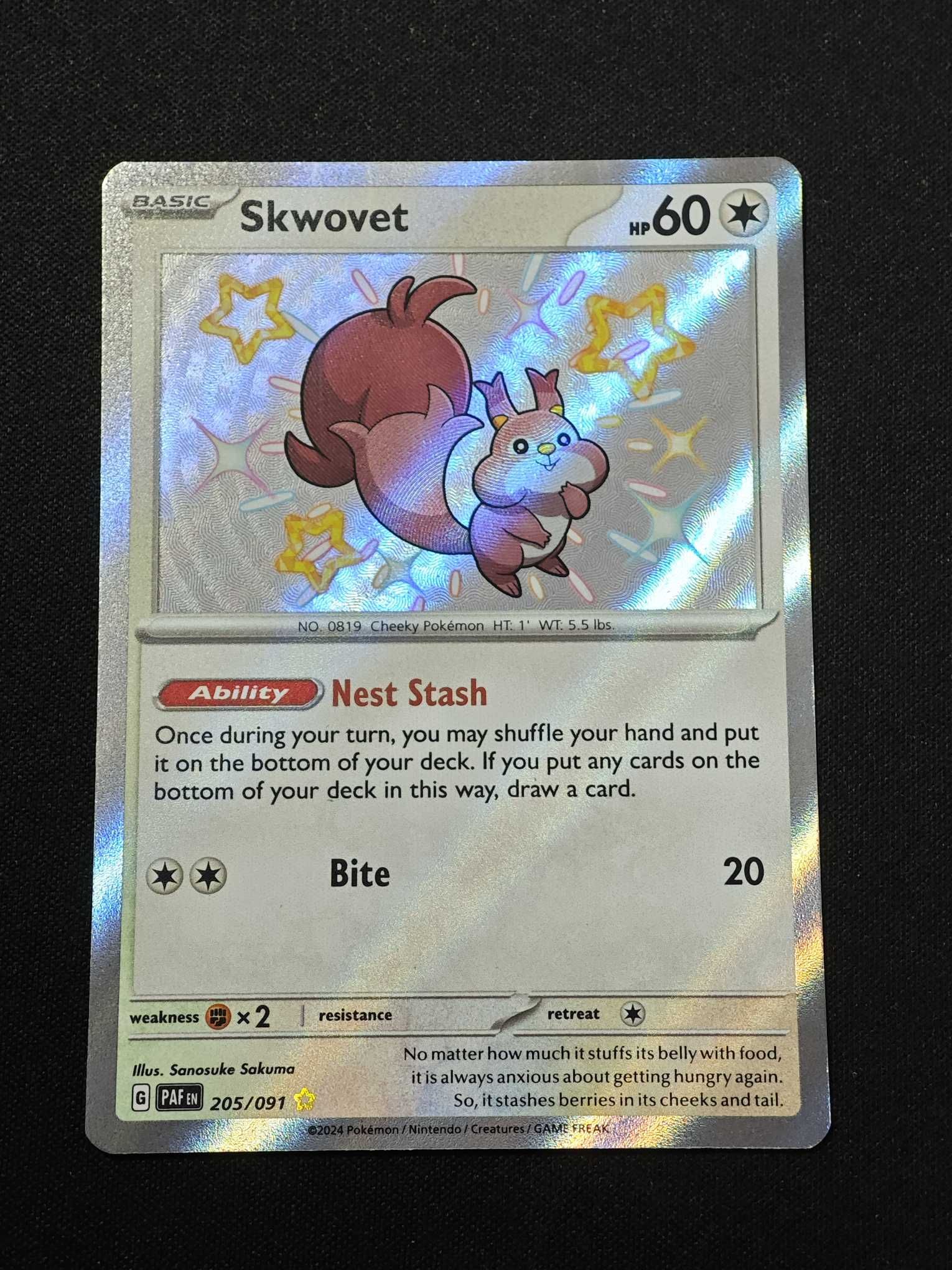 2024 Pokemon TCG 帕底亚命运PAF 贪心栗鼠(Skwovet) PAF-205/091 en S闪 闪卡 高罕 打牌 收藏 凑套 实卡精美 裸卡默认微瑕 无事拍卖-🌶️