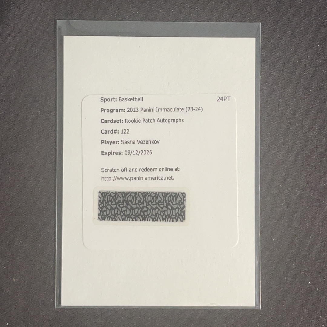 2023-24 Panini Immaculate Sasha Vezenkov RC 【熊猫拍卖】爱咪咪 国王 新秀 萨沙 维琴科夫 RPA 签字 卡签 交换板 只发板 瑕疵如图(BRBL)