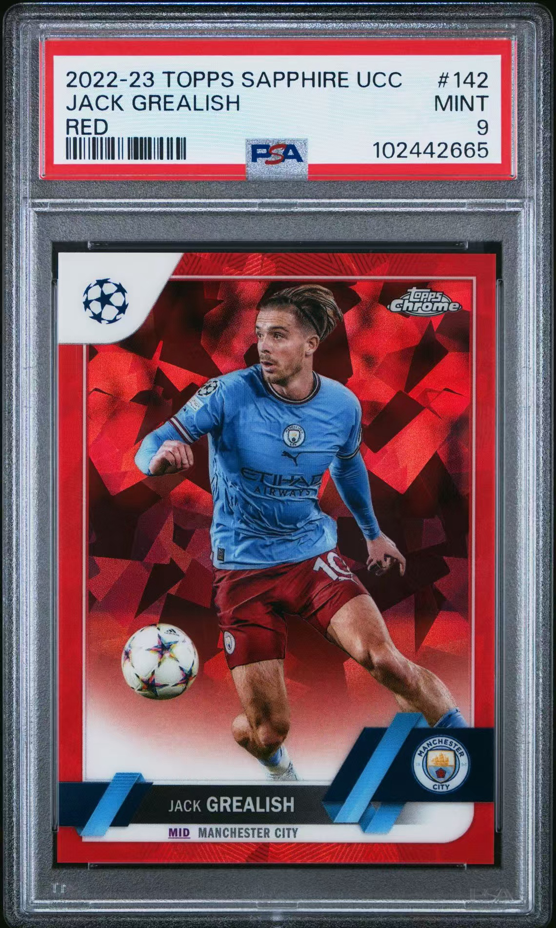 2022-23 Topps Chrome Jack Grealish SAPPHIRE 格拉利什 曼城 维拉 英格兰 2/5编 PSA9 POP2 红碎冰折 折射 五冠王 欧冠 摇子 亿元先生