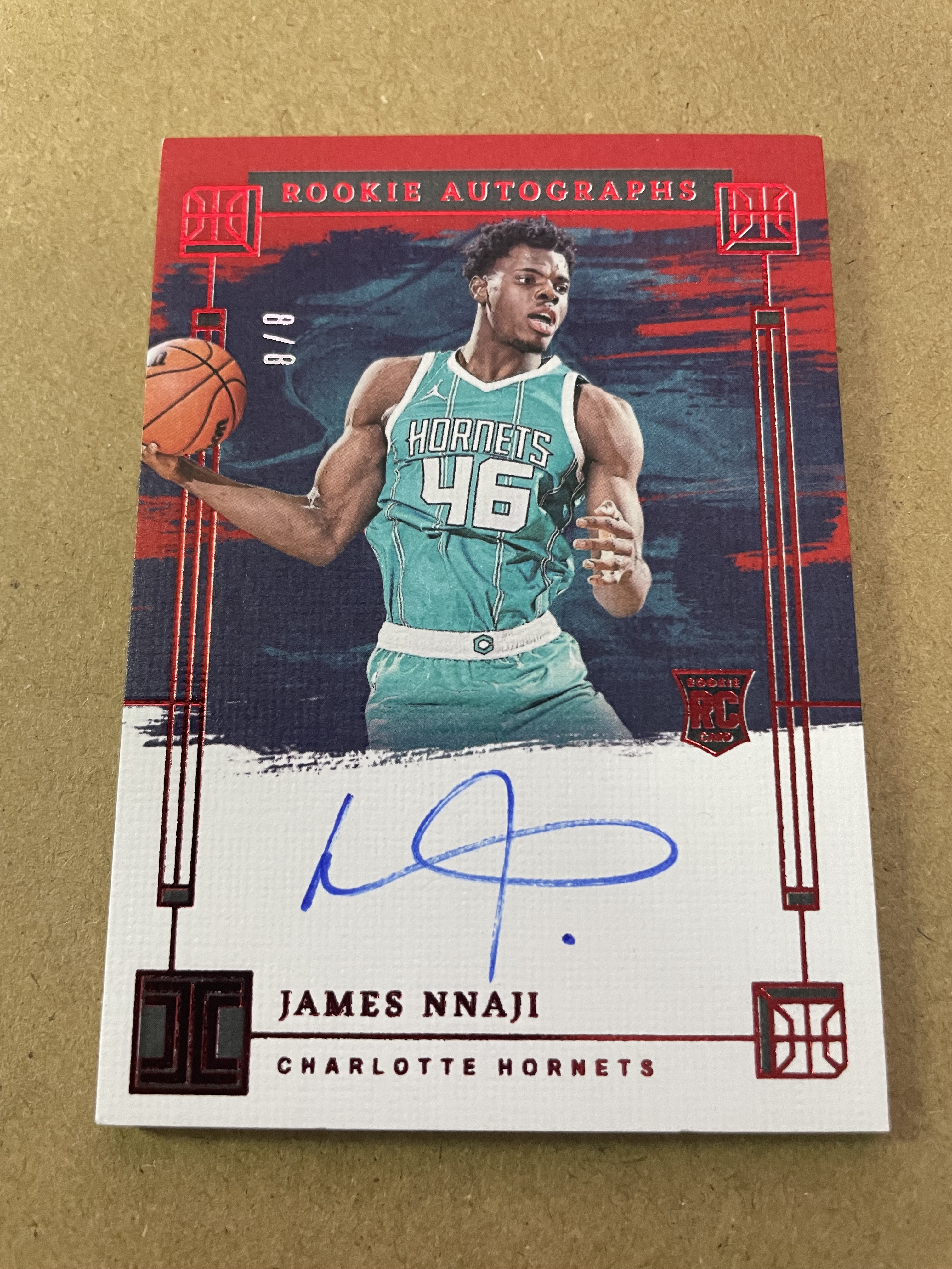 2023-24 Panini Impeccable James Nnaji RC 小真金 国际版 黄蜂队 新秀 詹姆斯 纳吉 签字 卡签 尾编 8/8编(背面边角瑕疵)