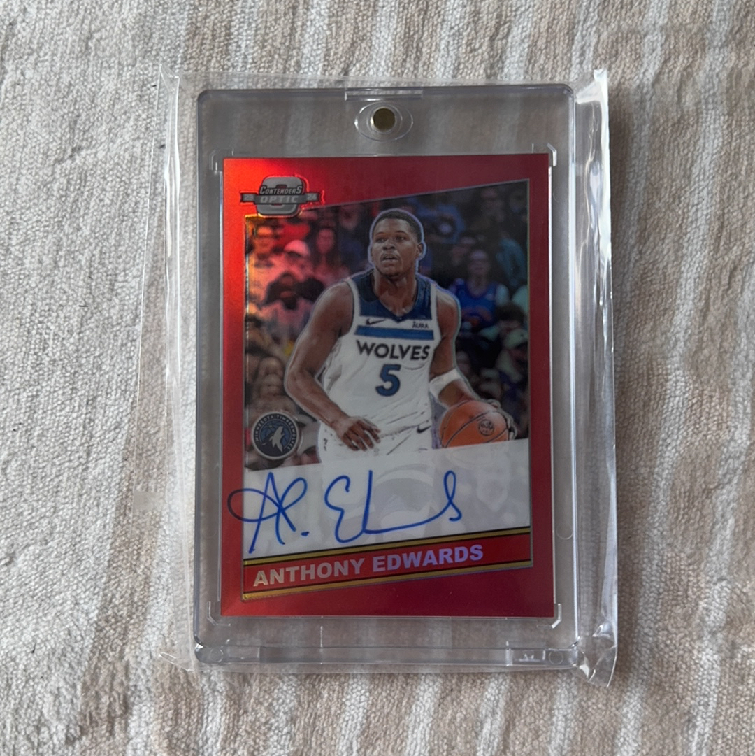 2023-24 Panini Contenders Optic Anthony Edwards 安东尼爱德华兹 华子 森林狼 球票op 49/49编 尾编 红折 签字卡签 复古签 墨迹完美 建议评级