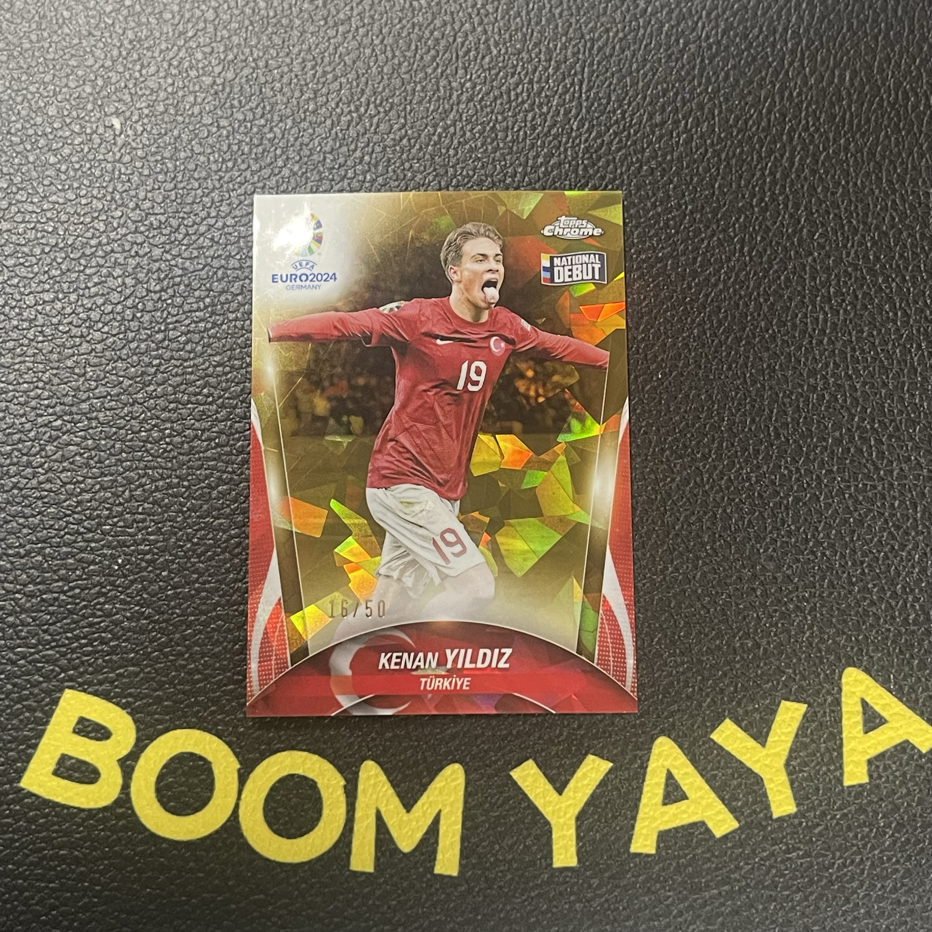 2024 Topps Chrome Kenan Yildiz 【BOOM YAYA】TC 蓝宝石 欧洲杯 土耳其 伊尔迪兹 16/50编 金碎冰折 卡品如图 不累计不到付