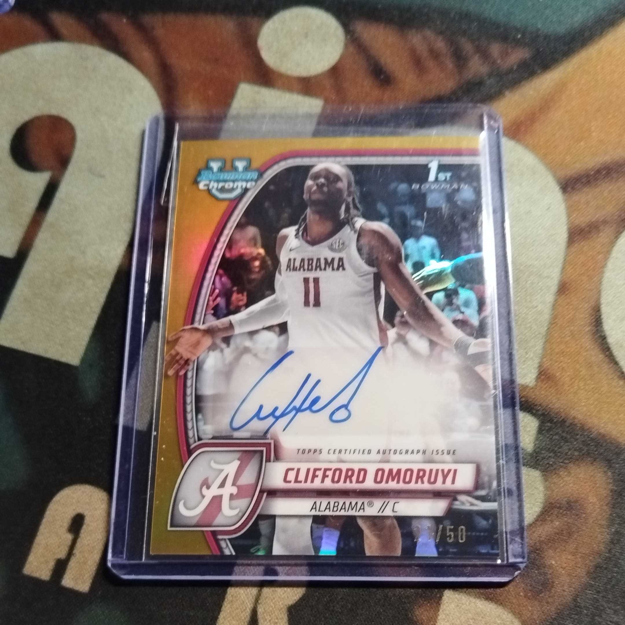 2025 Topps Bowman Sterling cr7代卖 Clifford Omoruyi是一位来自肯塔基大学的篮球运动员 贴签 完美签字 金折 21/50编 不发到付小李