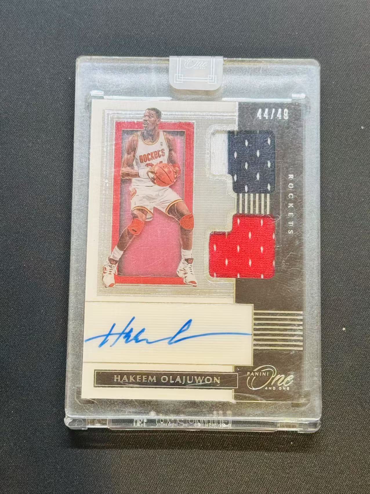 Hakeem Olajuwon 奥拉朱旺 2019-20 One And One OAO /49编带编限量 JA 签字 卡签 三色球衣物料 火箭队 大梦/原封砖