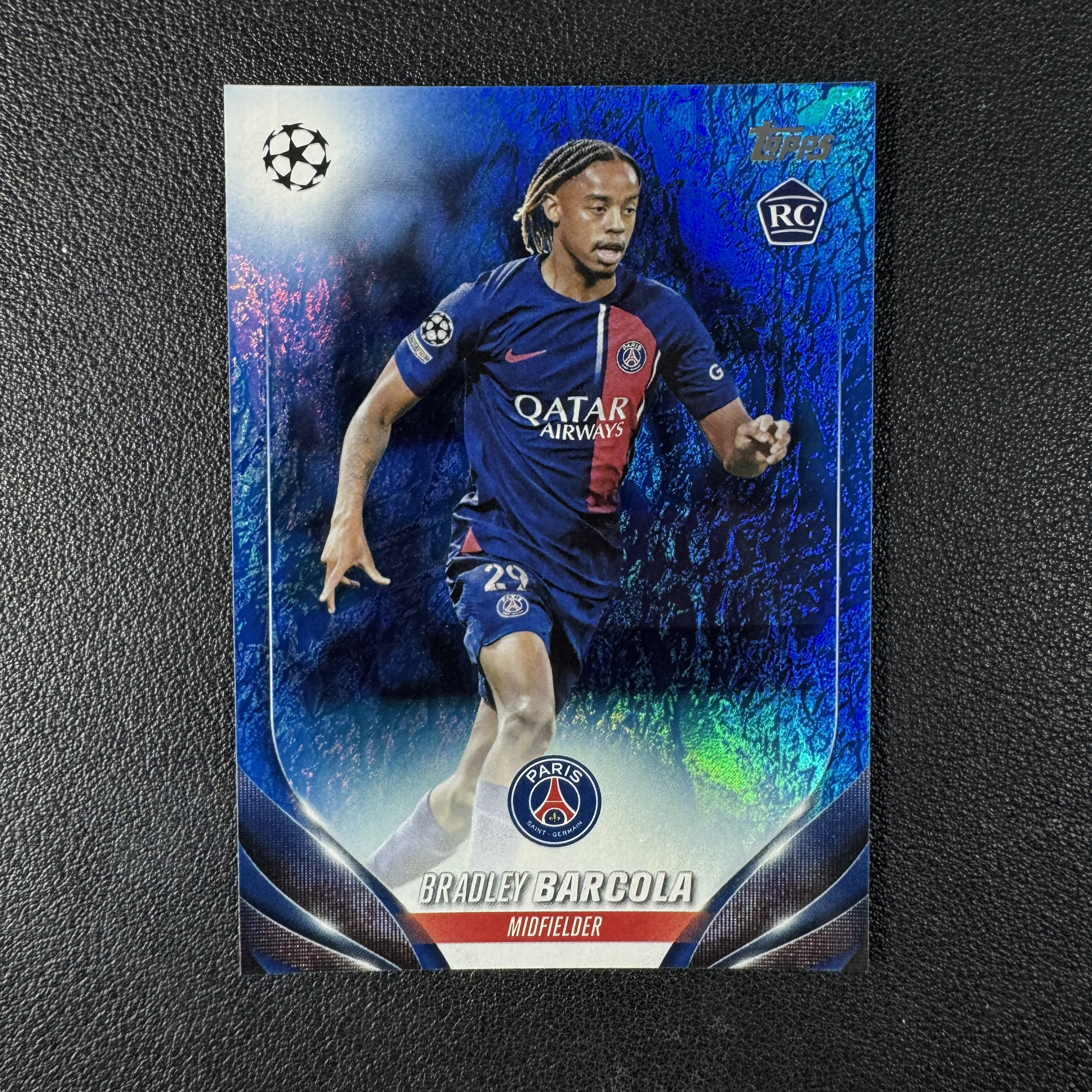 2023-24 Topps UCC Bradley Barcola 欧冠 龙年碧玉 巴黎圣日耳曼 新秀RC 巴尔科拉 175编 蓝玉折 卡品如图 微瑕 拍前看描述 黄哥